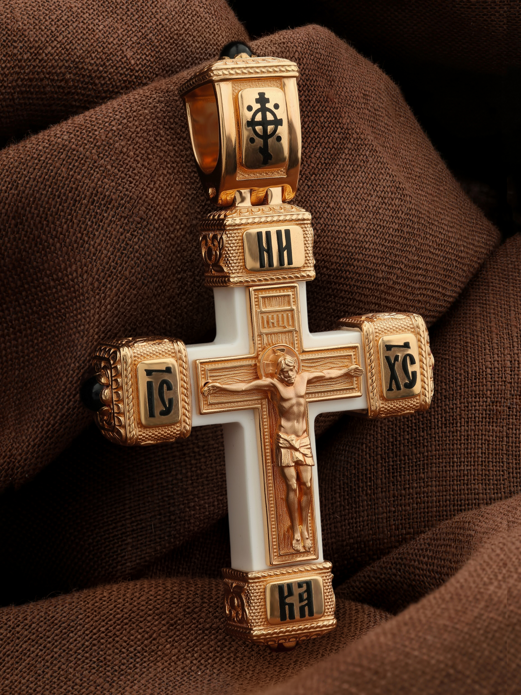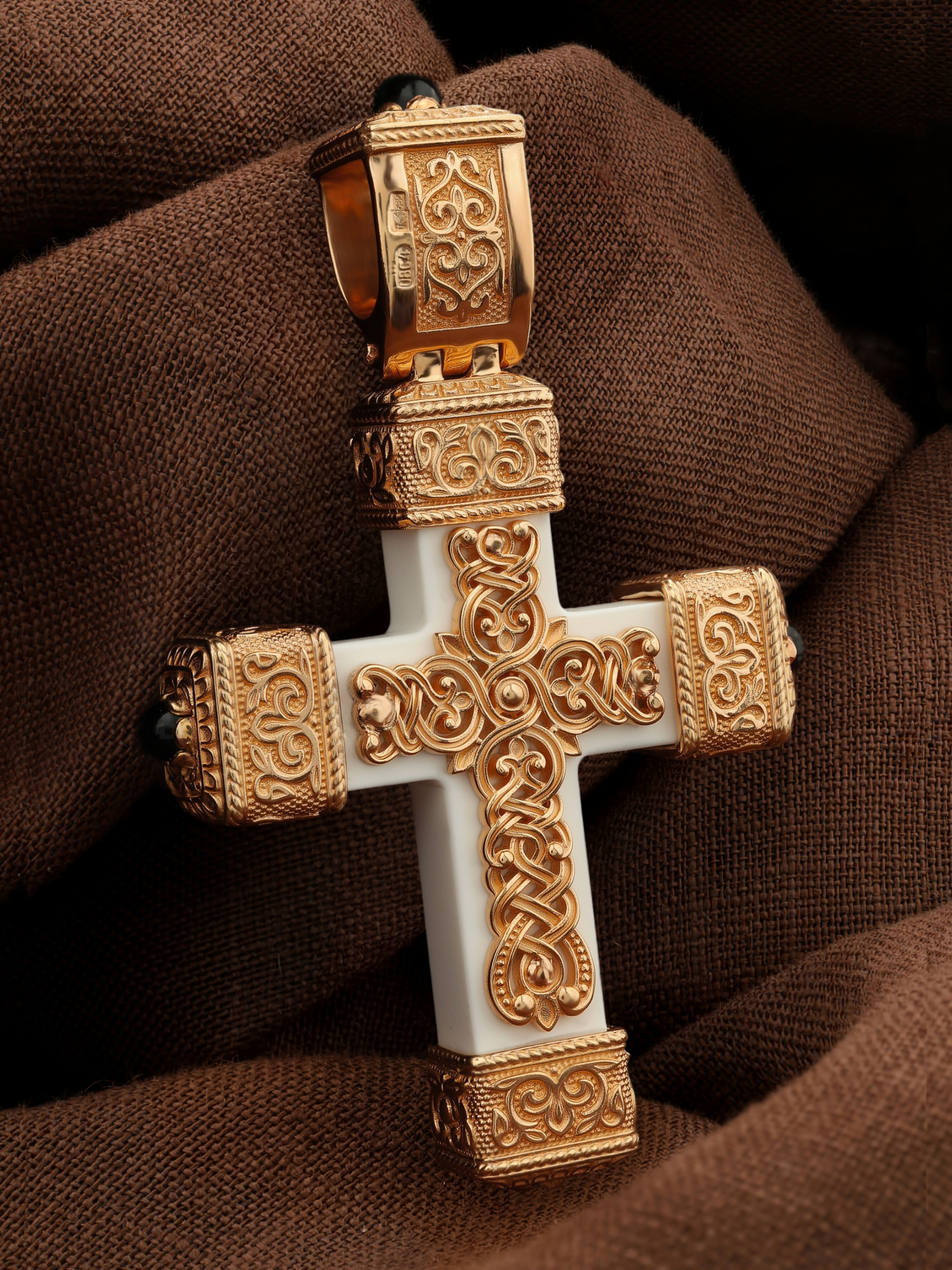 Крест из золота c эмалью, ониксом и бивнем мамонта