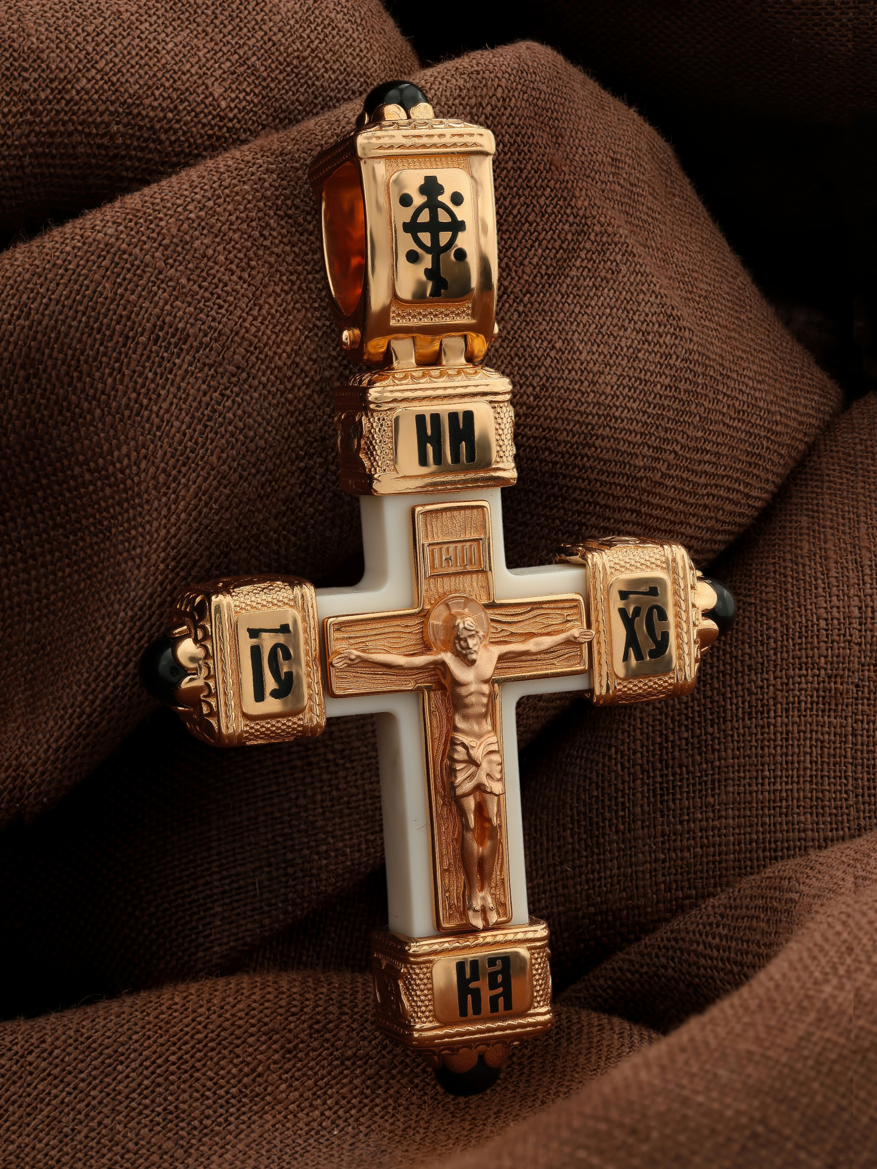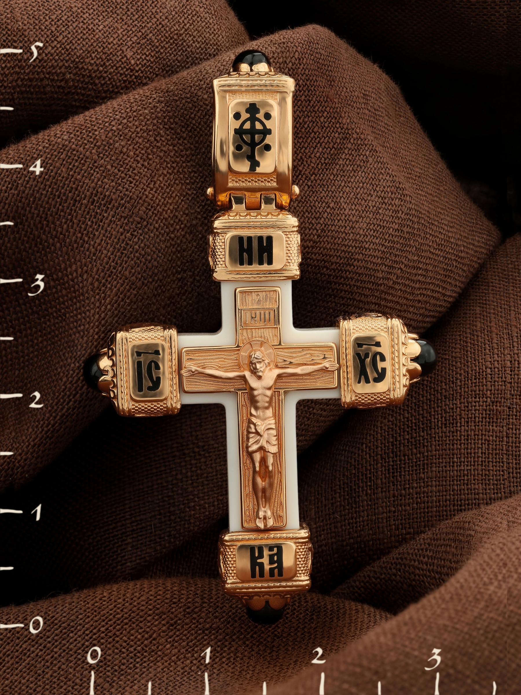 Крест из золота c эмаль, ониксом и бивнем мамонта