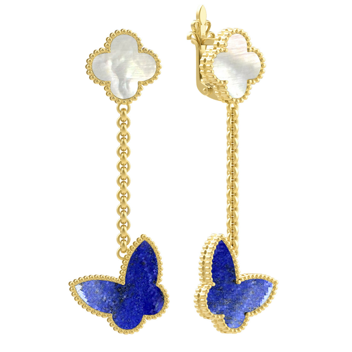 Серьги из лимонного золота c лазуритом и перламутром