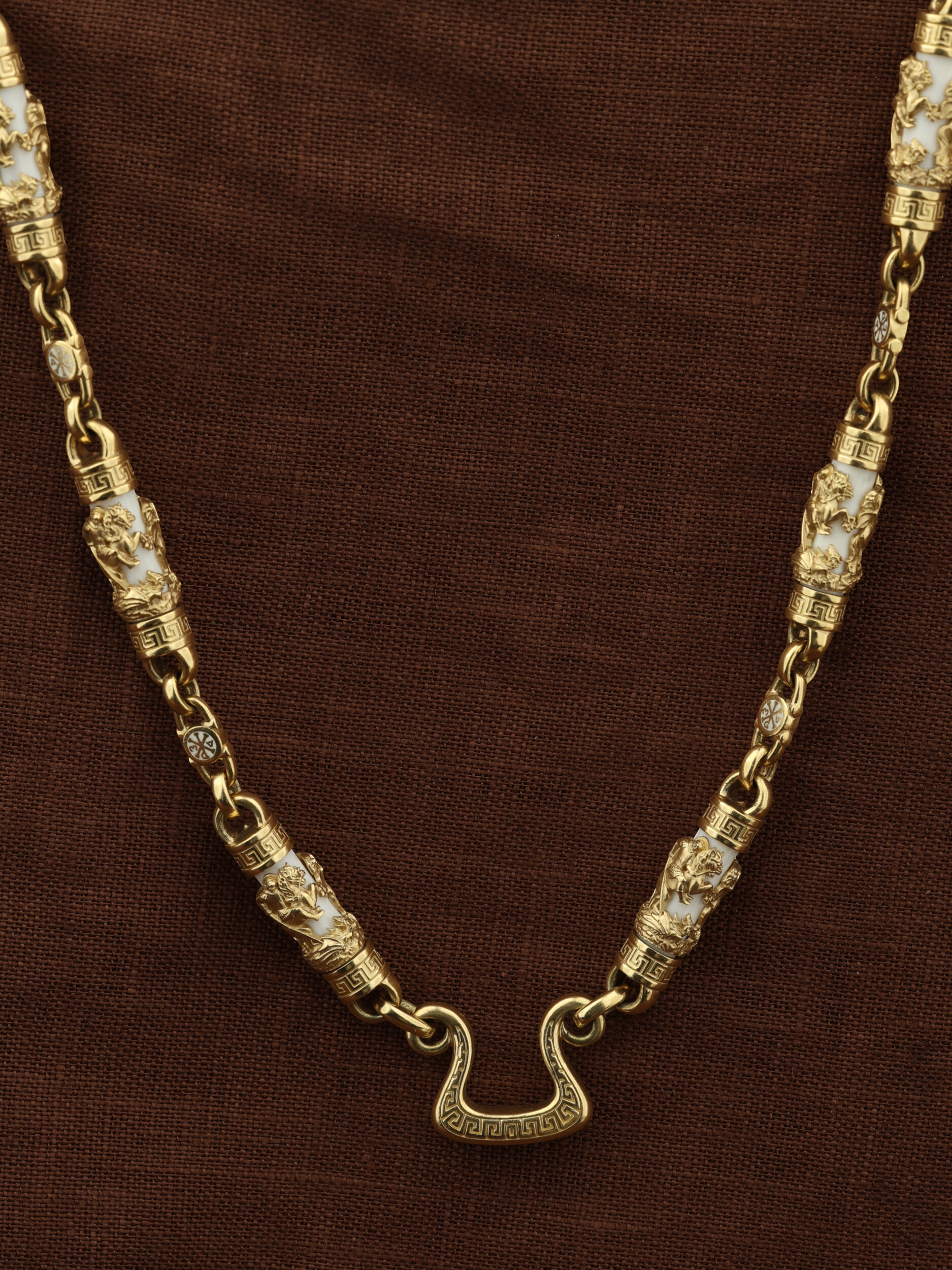 Цепь из лимонного золота c эмаль и бивнем мамонта