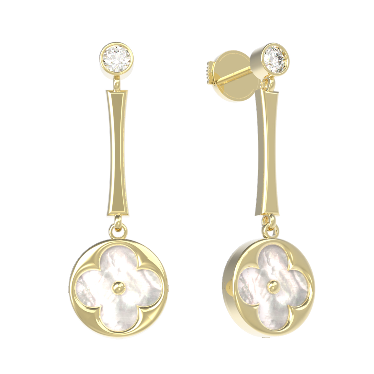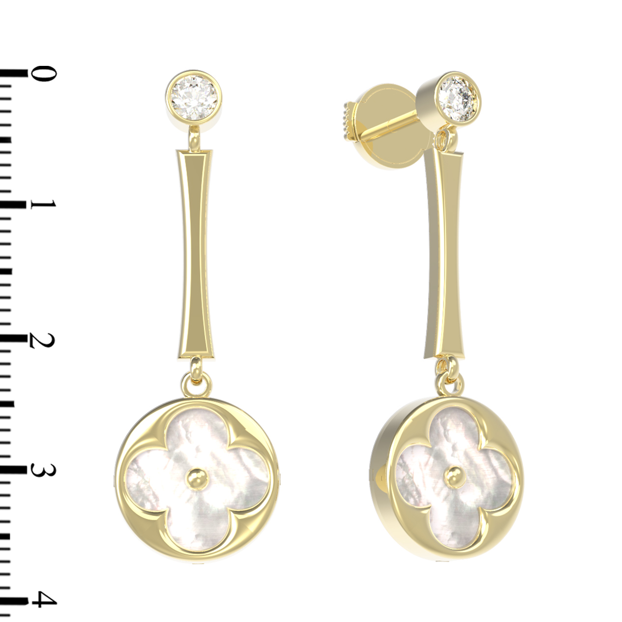 Серьги из лимонного золота c фианитом и перламутром
