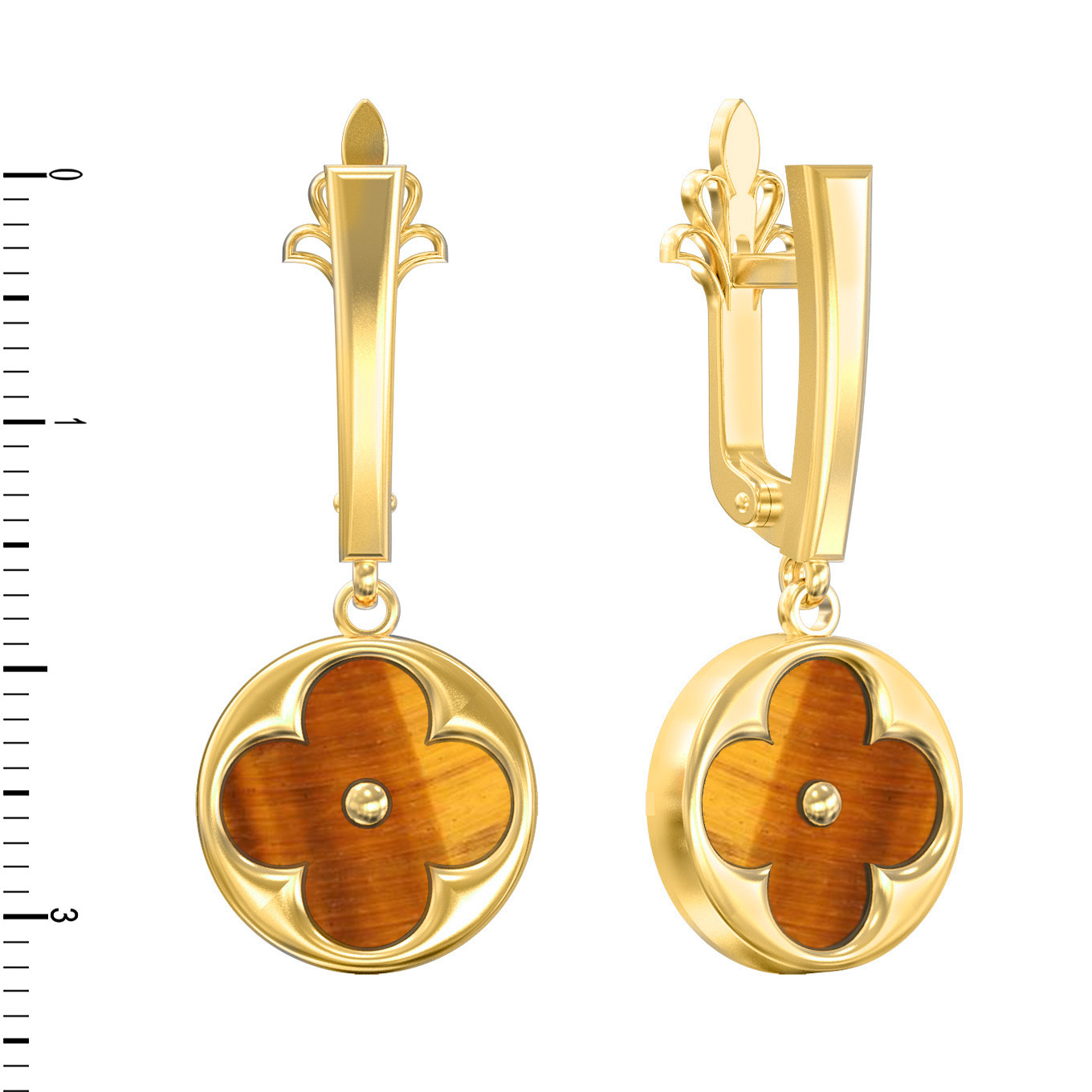 Серьги из лимонного золота c тигровым глазом