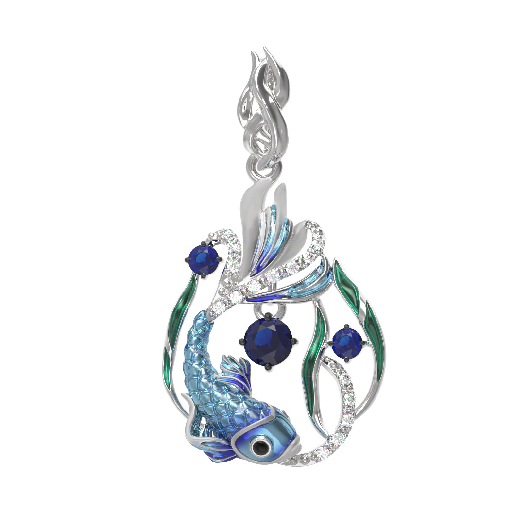 Подвеска из белого золота c эмаль, фианитом и сапфиром