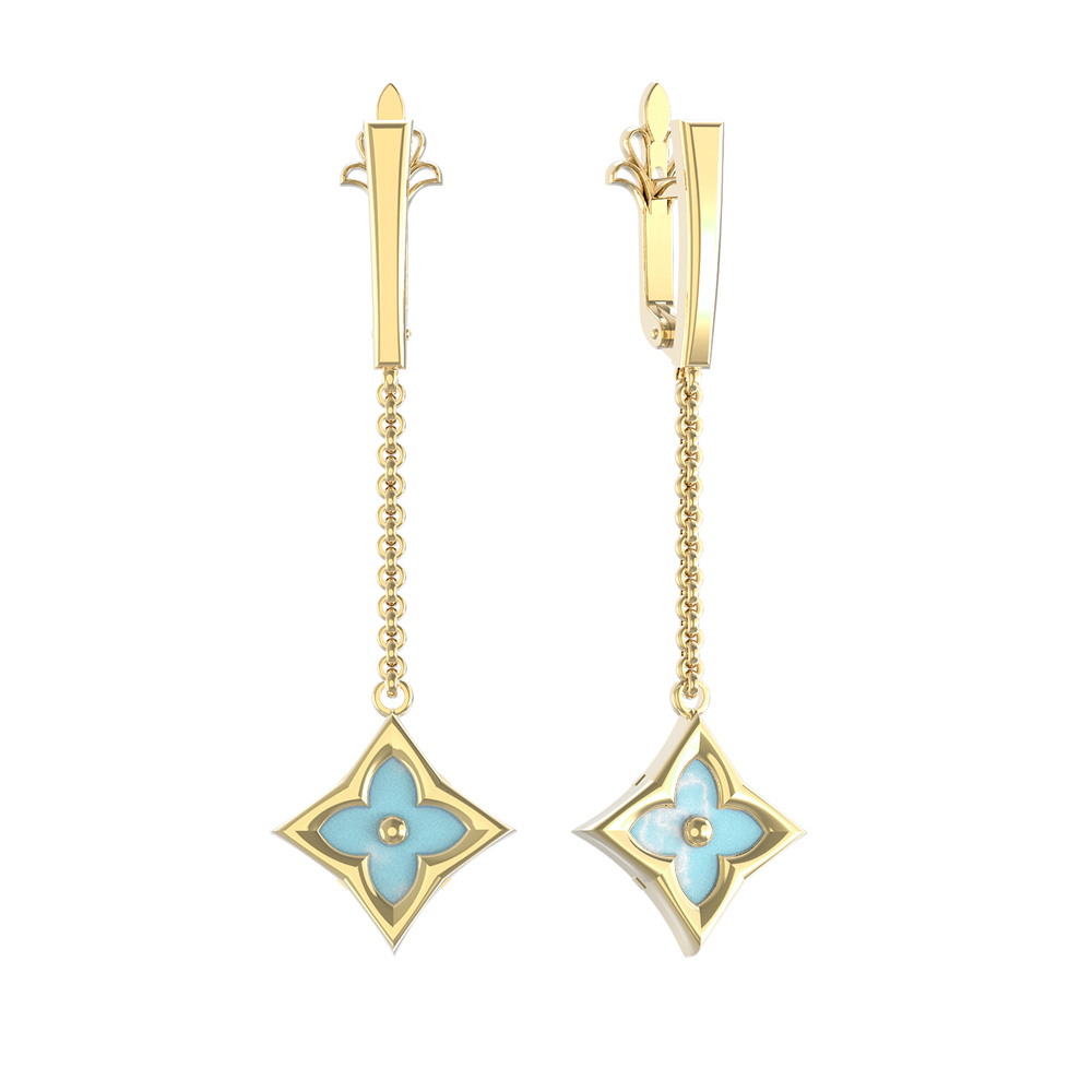 Серьги из лимонного золота c бирюзой