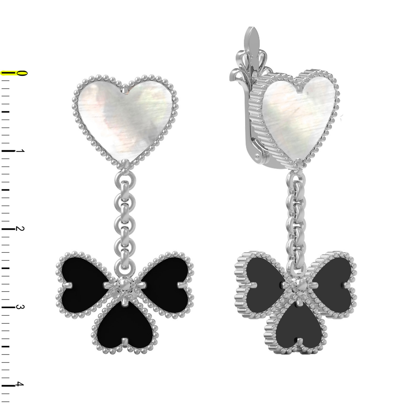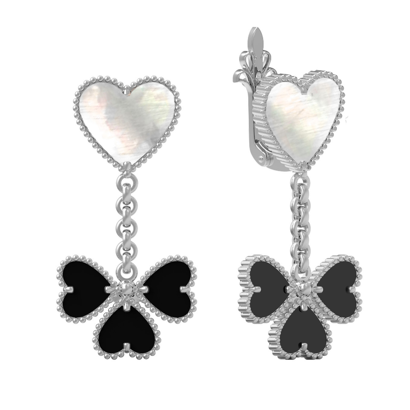 Серьги из белого золота c ониксом и перламутром