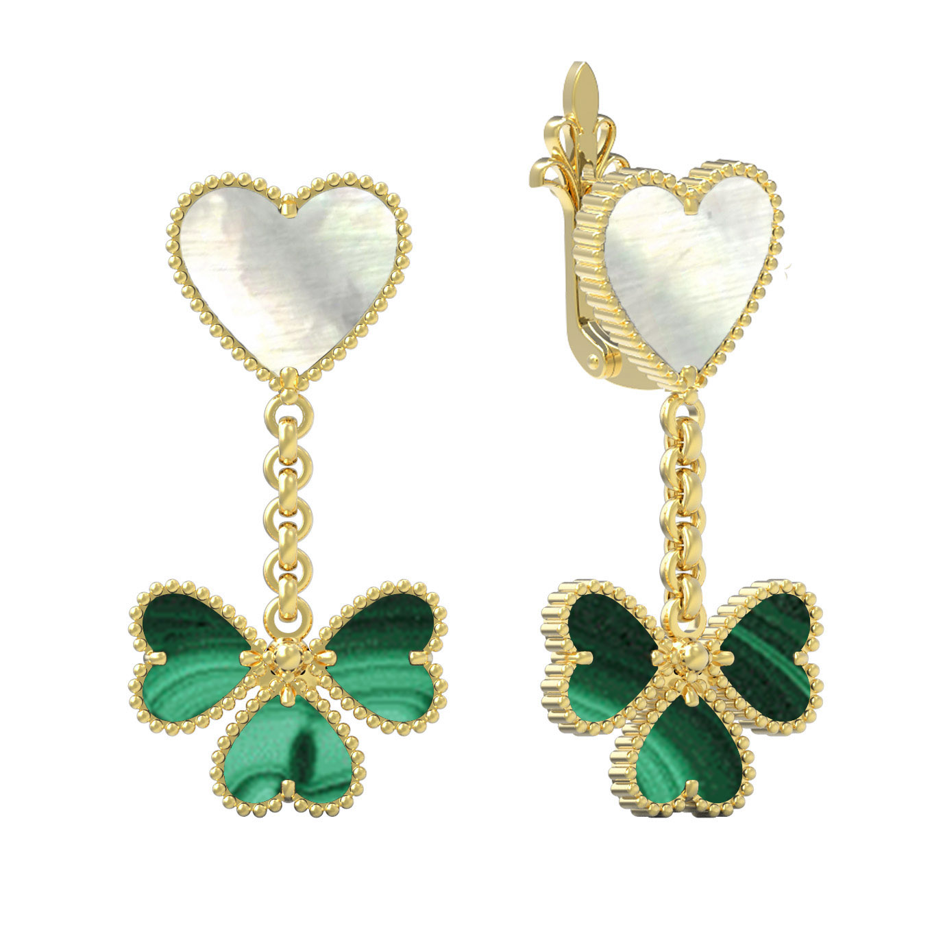 • Серьги из золота c малахитом и перламутром