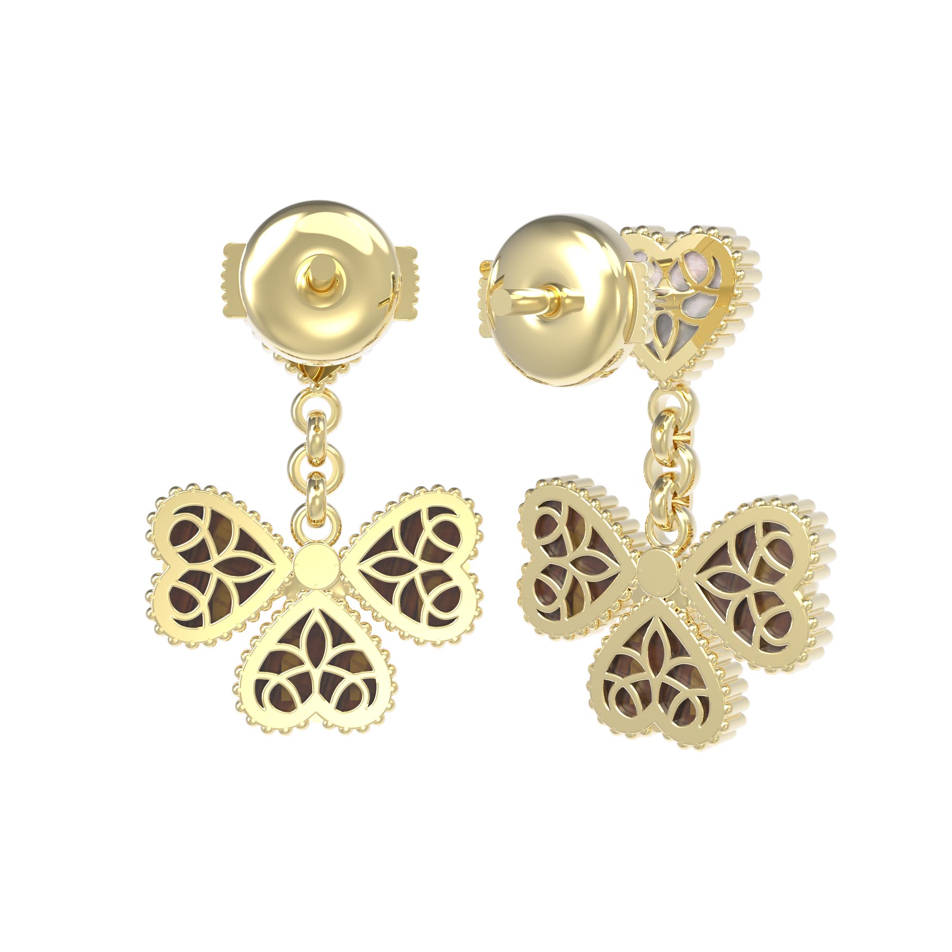Серьги из лимонного золота c тигровым глазом и перламутром