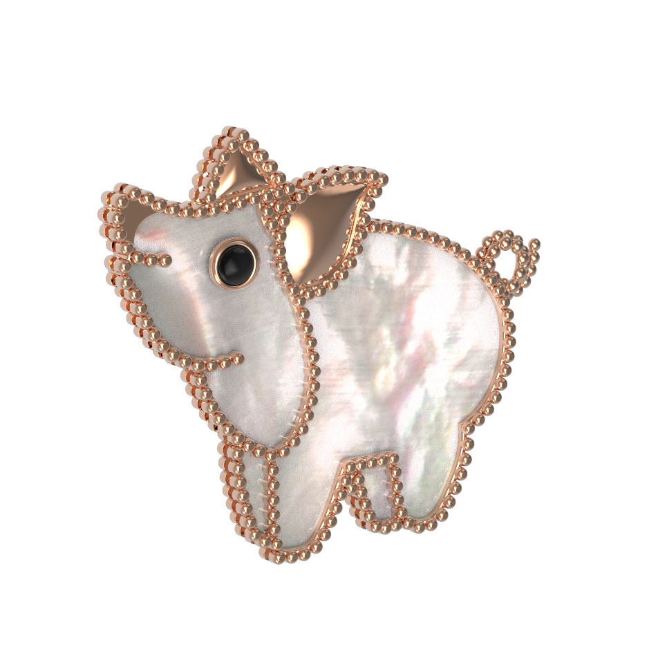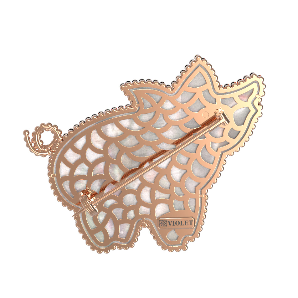 Брошь из золота c эмалью и перламутром