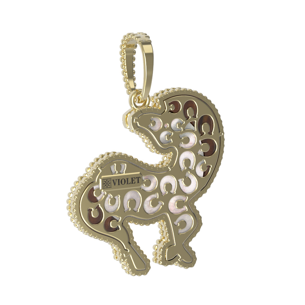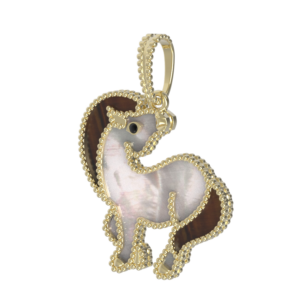 Подвеска из лимонного золота c эмаль, тигровым глазом и перламутром