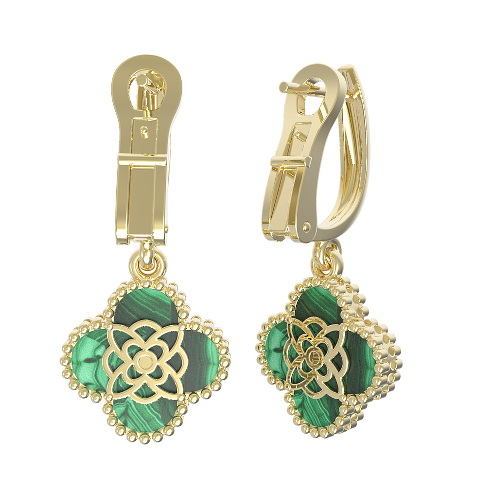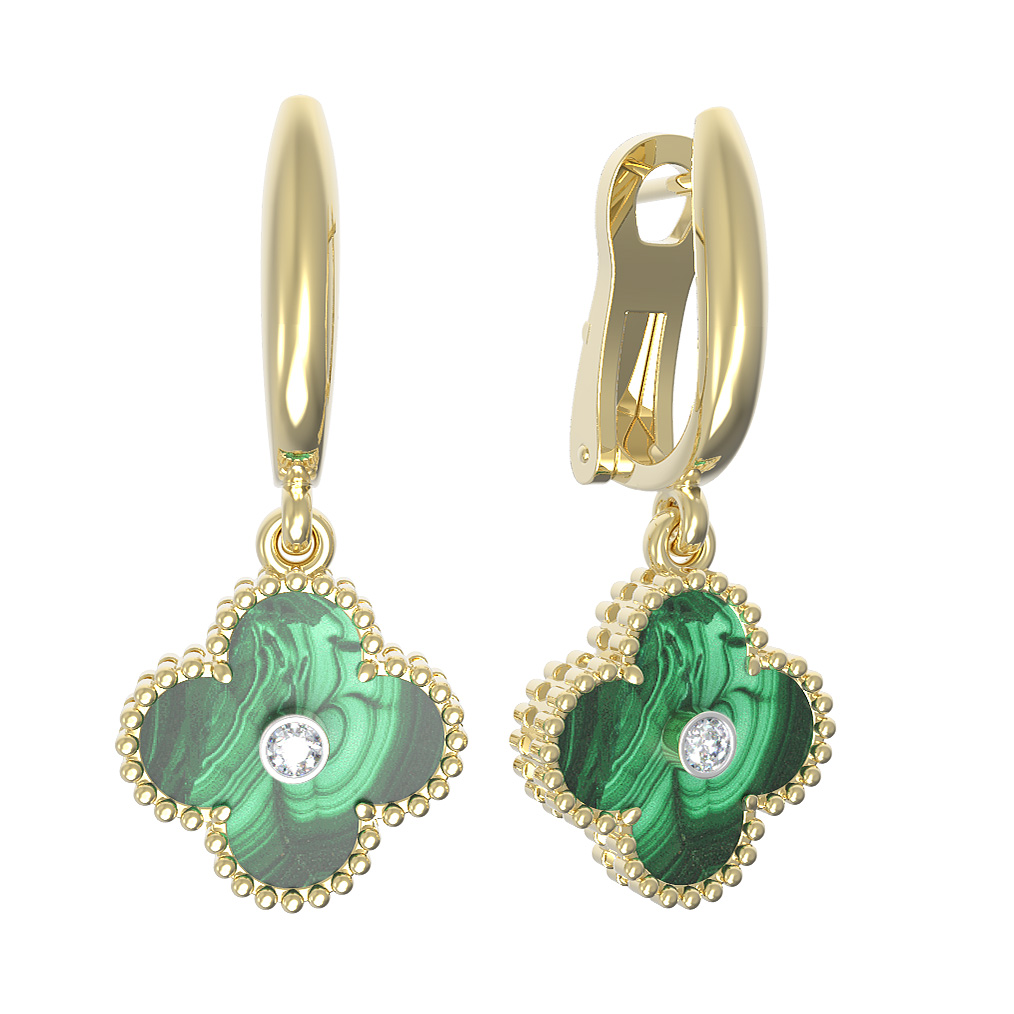 Серьги из лимонного золота c бриллиантами и малахитом