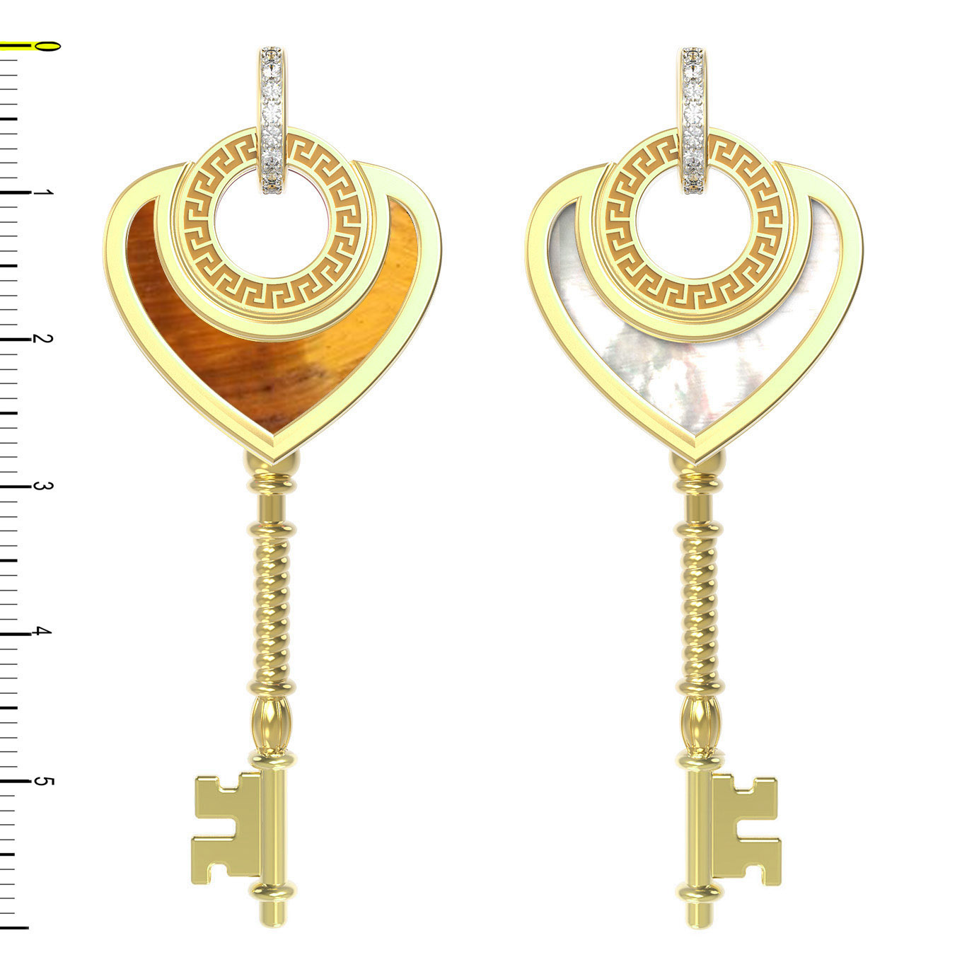 Подвеска из лимонного золота c фианитом, тигровым глазом и перламутром