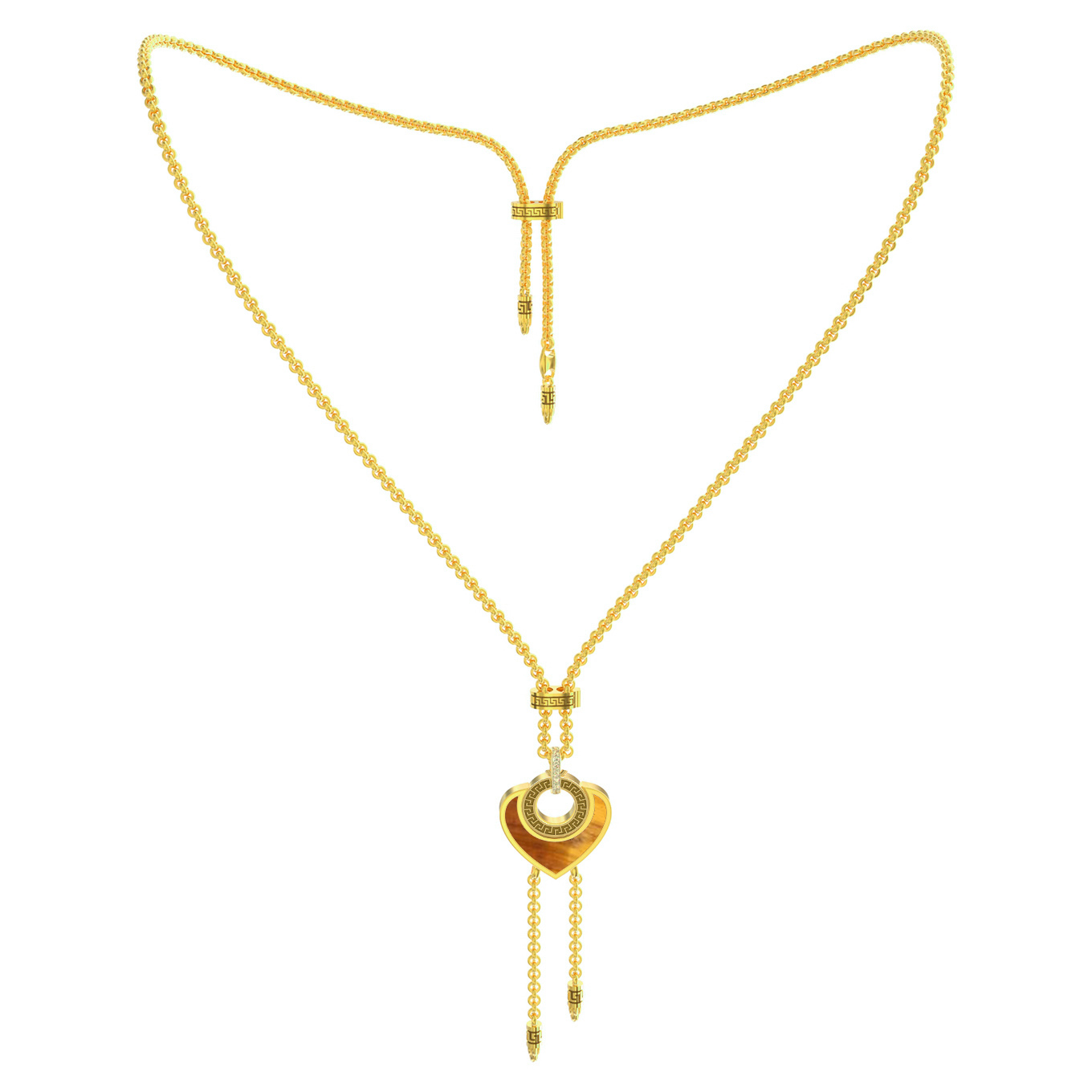 Колье из лимонного золота c фианитом, тигровым глазом и перламутром
