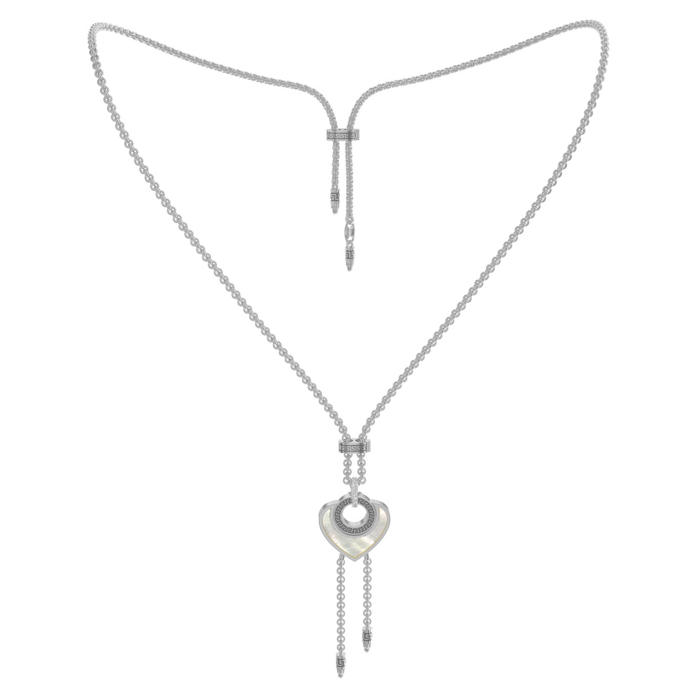 • Колье из белого золота c фианитом, ониксом и перламутром