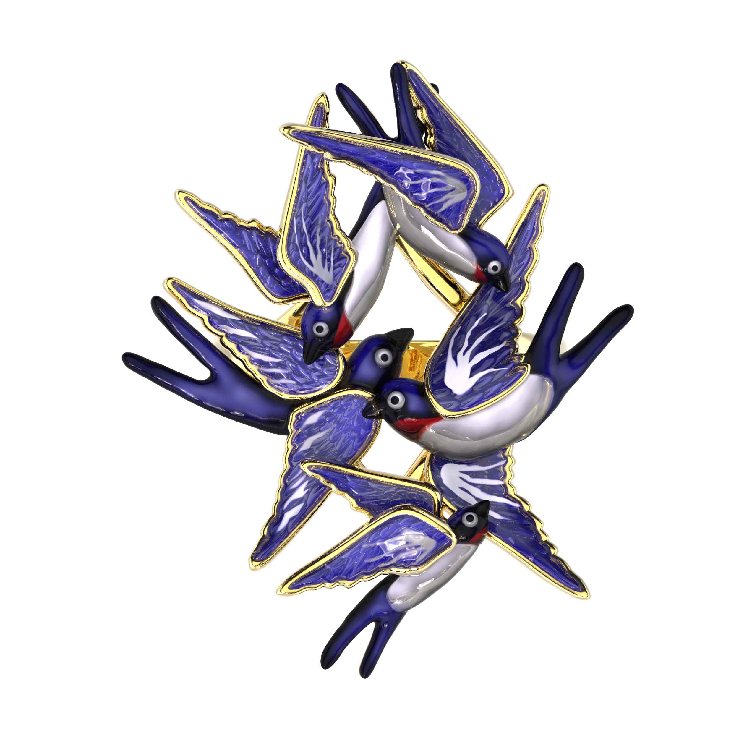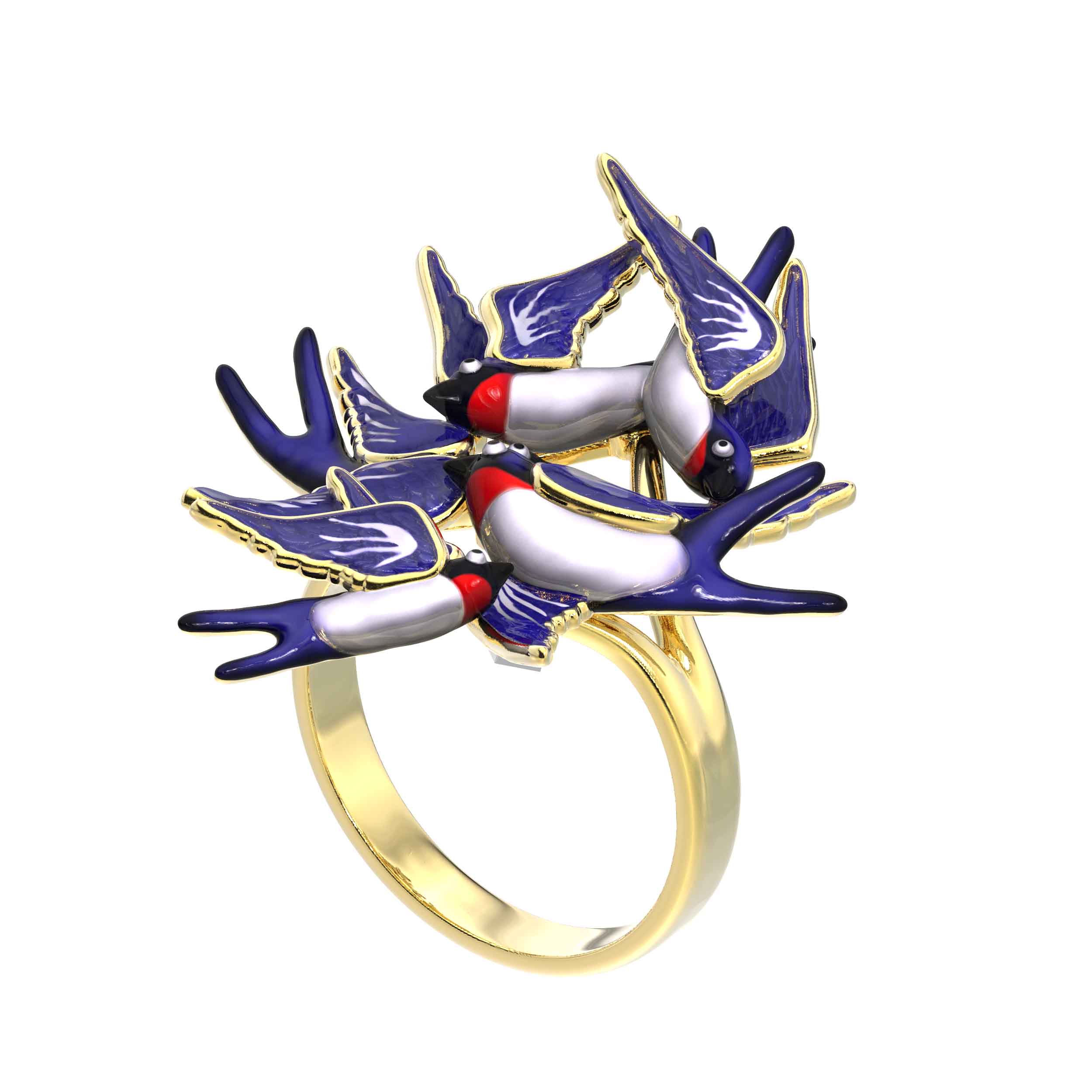 Кольцо из лимонного золота c эмалью