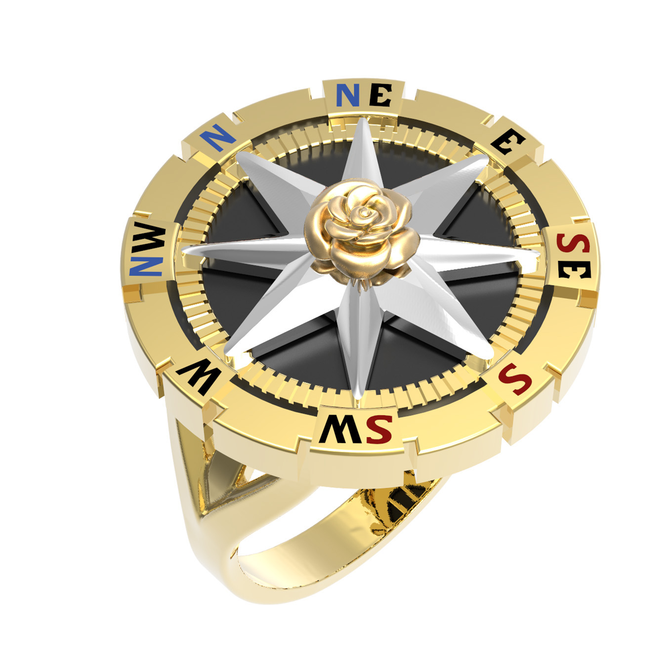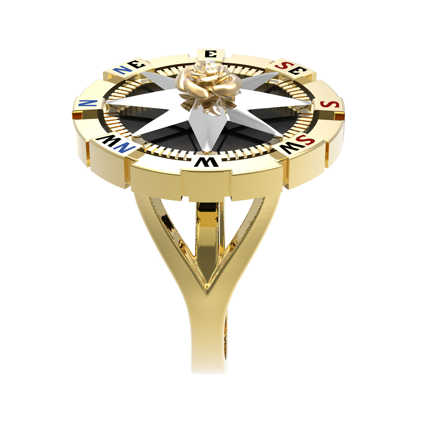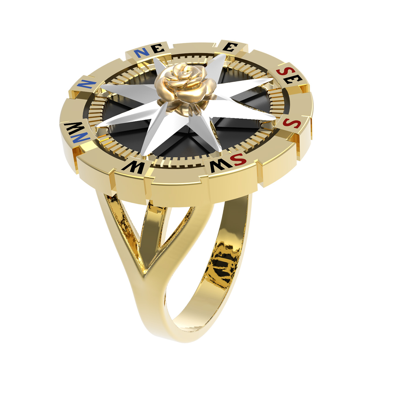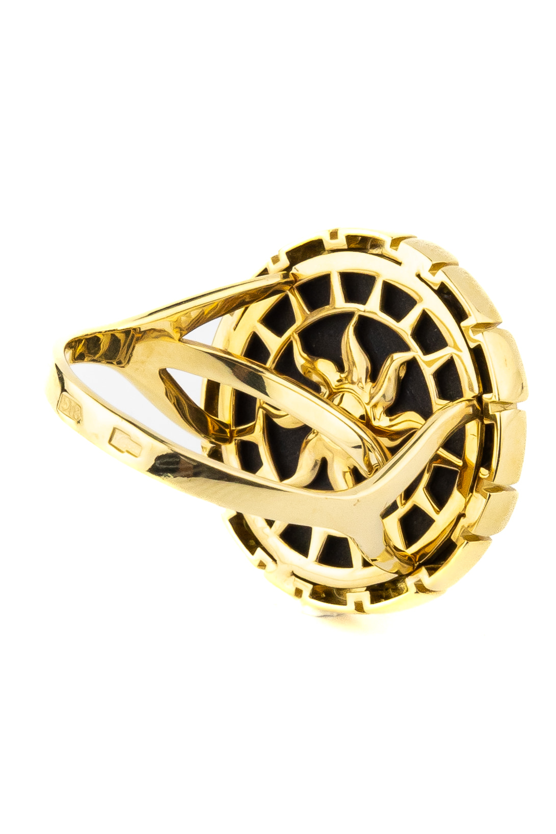 Кольцо из лимонного золота c эмаль и ониксом