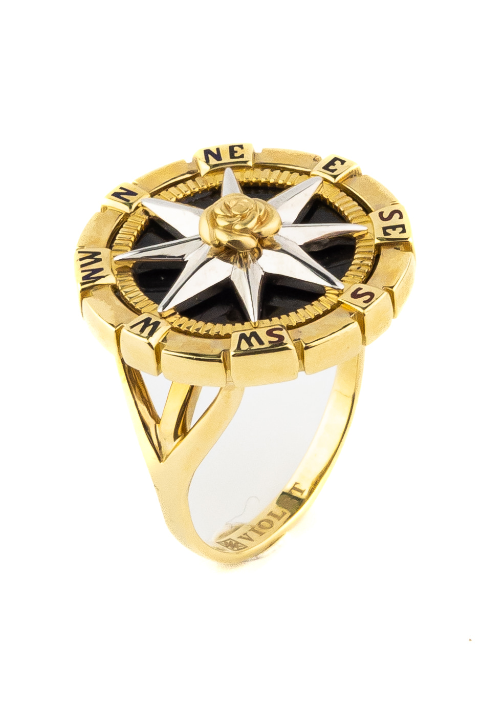 Кольцо из лимонного золота c эмаль и ониксом