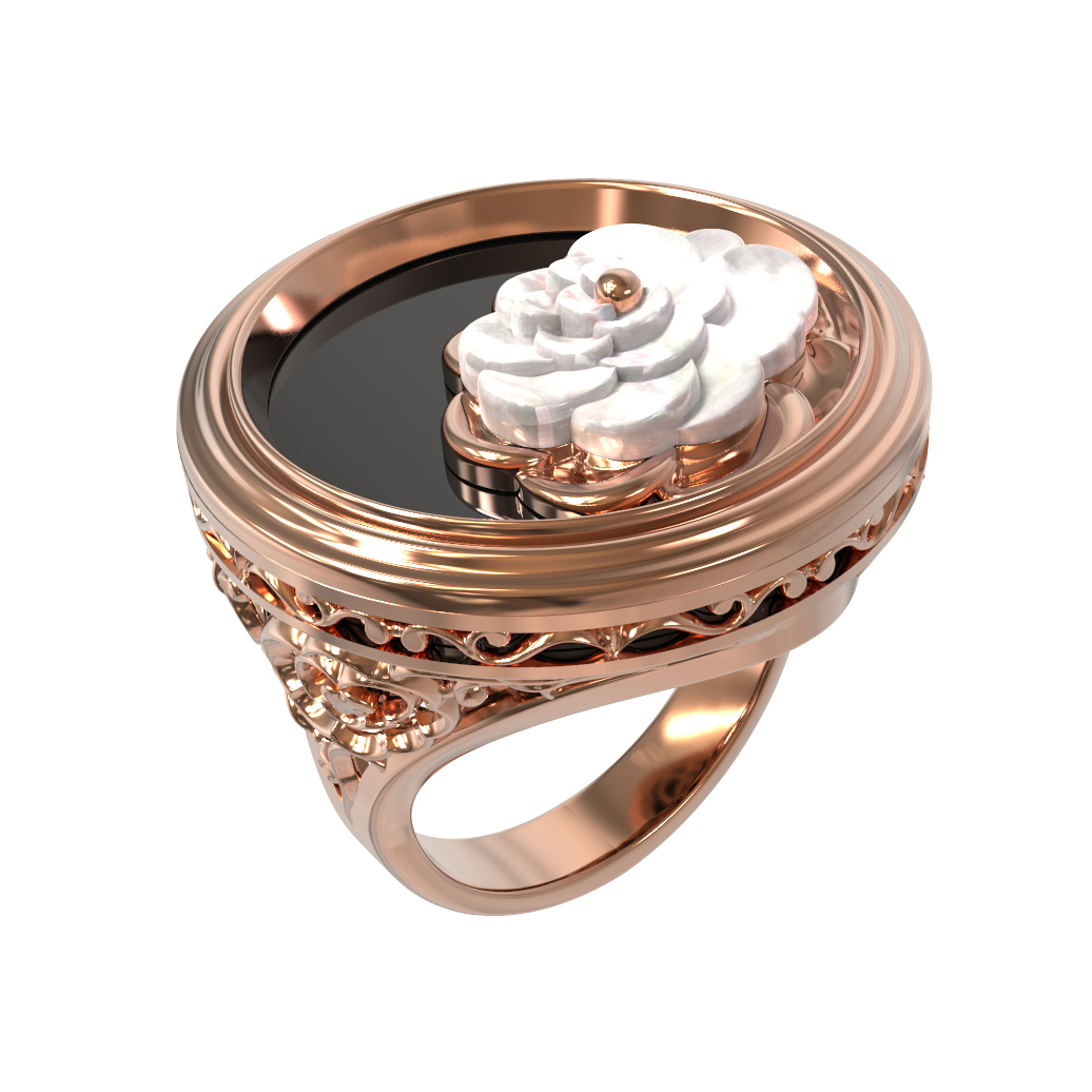 Кольцо из золота c ониксом и перламутром