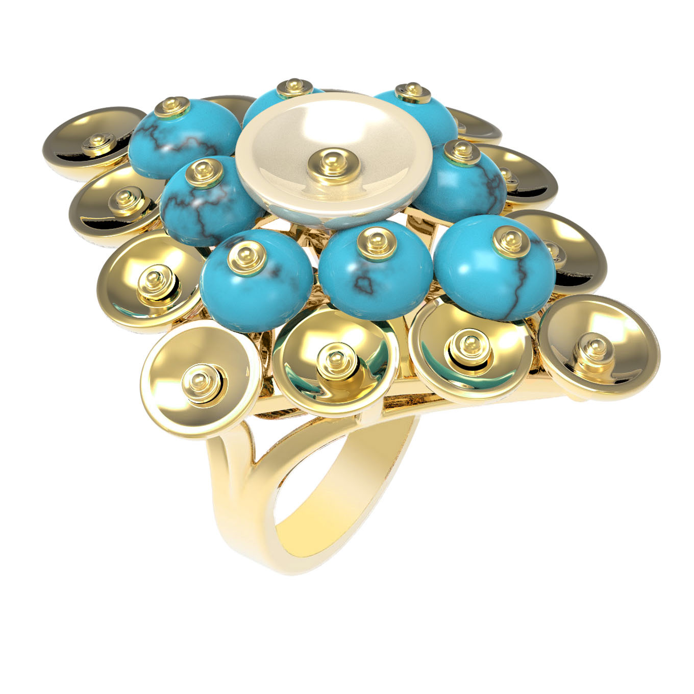 Кольцо из лимонного золота c бирюзой и перламутром