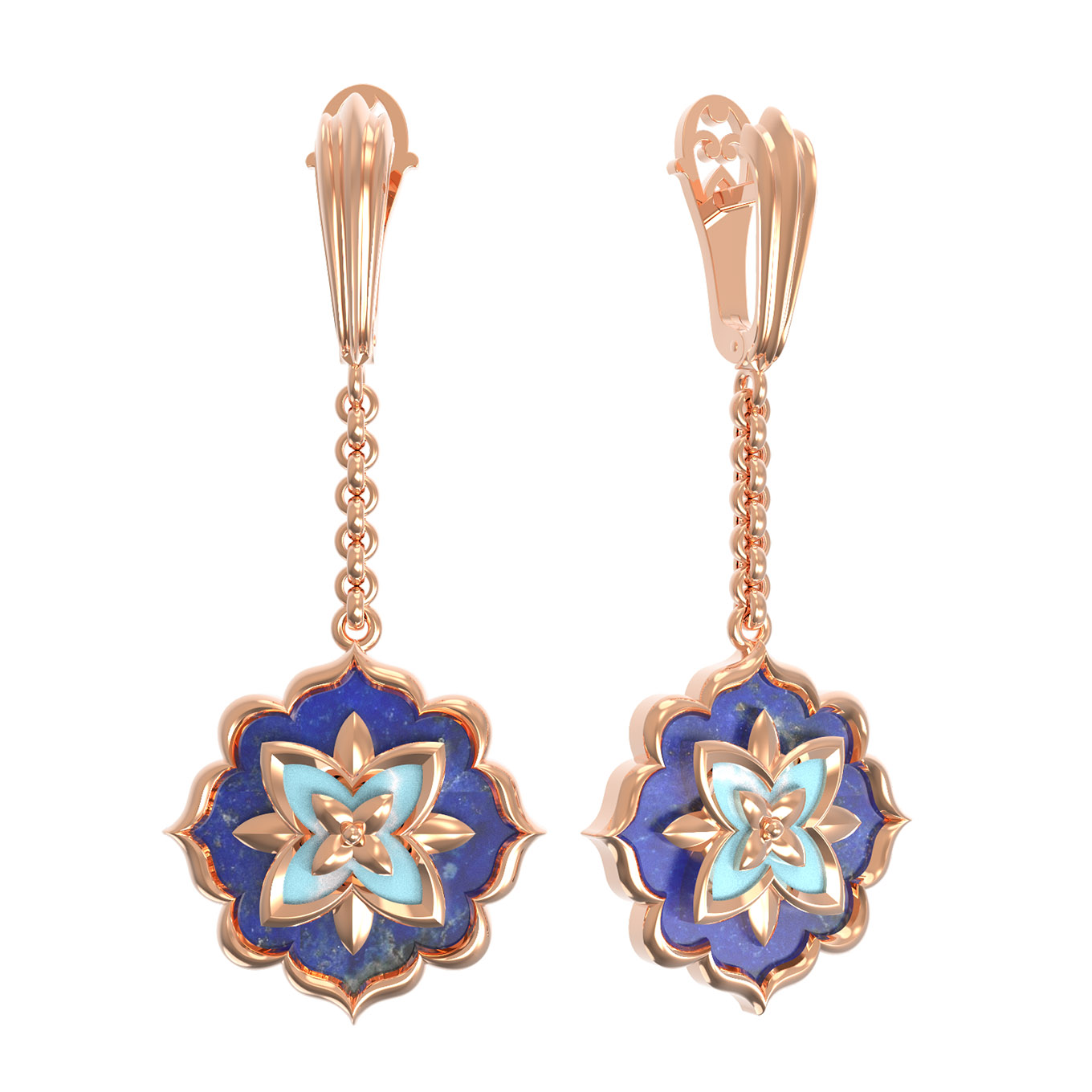 Серьги из золота c бирюзой и лазуритом