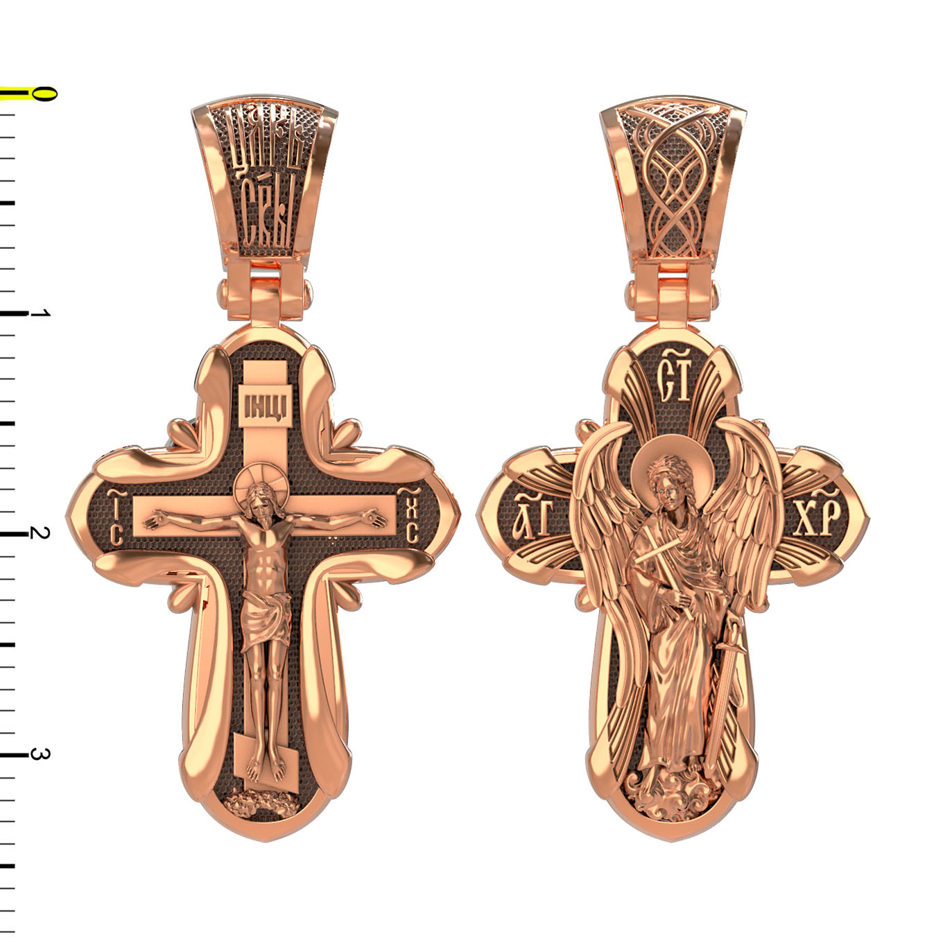 На оборотной стороне креста изображен Святой Ангел-Хранитель держащий в правой руке крест, а в левой — мечь.. Ангел-Хранитель — это Ангел приставляемый Богом к человеку при крещении для охраны и помощи в добрых делах. Он невидимо находится при человеке на протяжении всей его жизни, если человек сохраняет в себе любовь к Богу и истинную веру перед Ним. Ангел-Xранитель делают для нас все, что служит к истинному нашему благу и спасению. Невидимо пребывая при нас постоянно, он, руководствуя нас ко спасению, не только по нашему желанию таинственно наставляет нас на все доброе и полезное, не только возносит наши молитвы к Богу, но еще и сам от себя охраняют и защищают нас от врагов видимых и невидимых и ходатайствует за нас пред Богом. Ангел-Хранитель так любит нас, как никто на земле любить не может. Ангел-Хранитель — присный друг наш, незримый тихий собеседник, пресладостный утешитель. Одного лишь каждому из нас он желает — спасения души; к этому он направляет все свои заботы. И если видит нас также заботящимися о спасении, радуется, если же видит нас пребывающими в нерадении о душе своей, скорбит. Но и самый великий грешник может примириться со своим Ангелом-Хранителем посредством искреннего раскаяния в грехах и оставления их навсегда. В таком случае, по слову Писания, великая радость бывает для всех ангелов на небесах (Лк. 15:10).