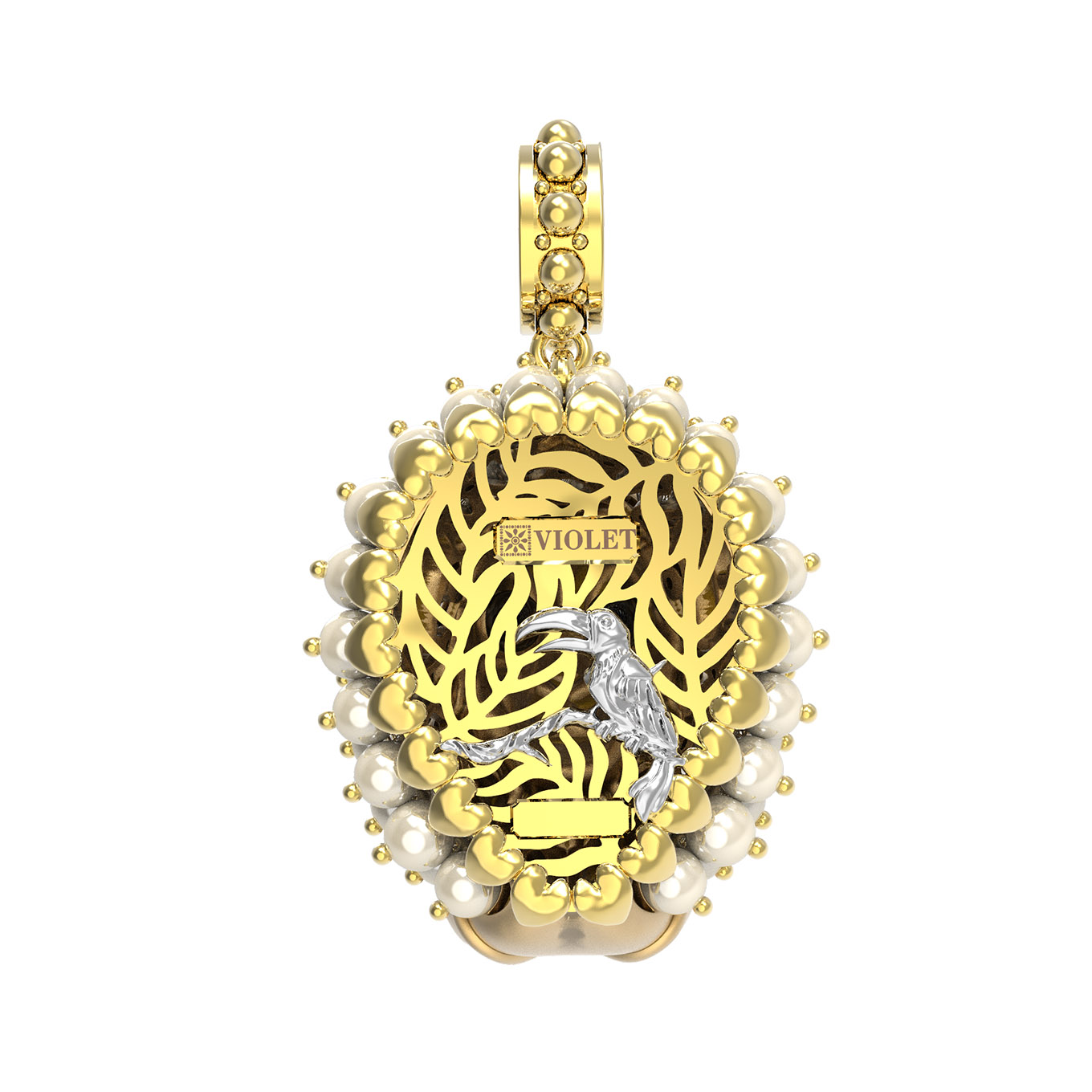 Подвеска из лимонного золота c эмалью и жемчугом