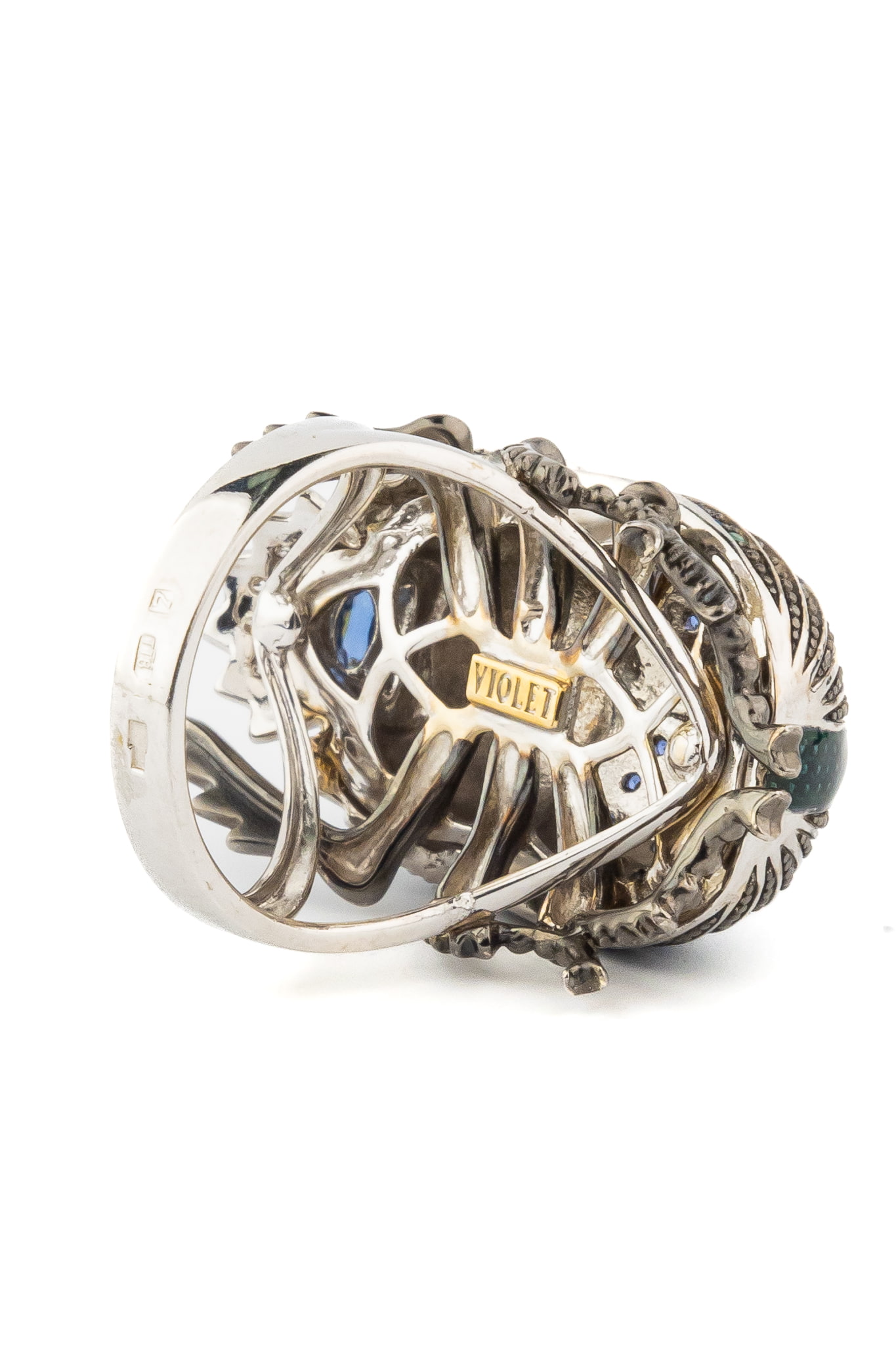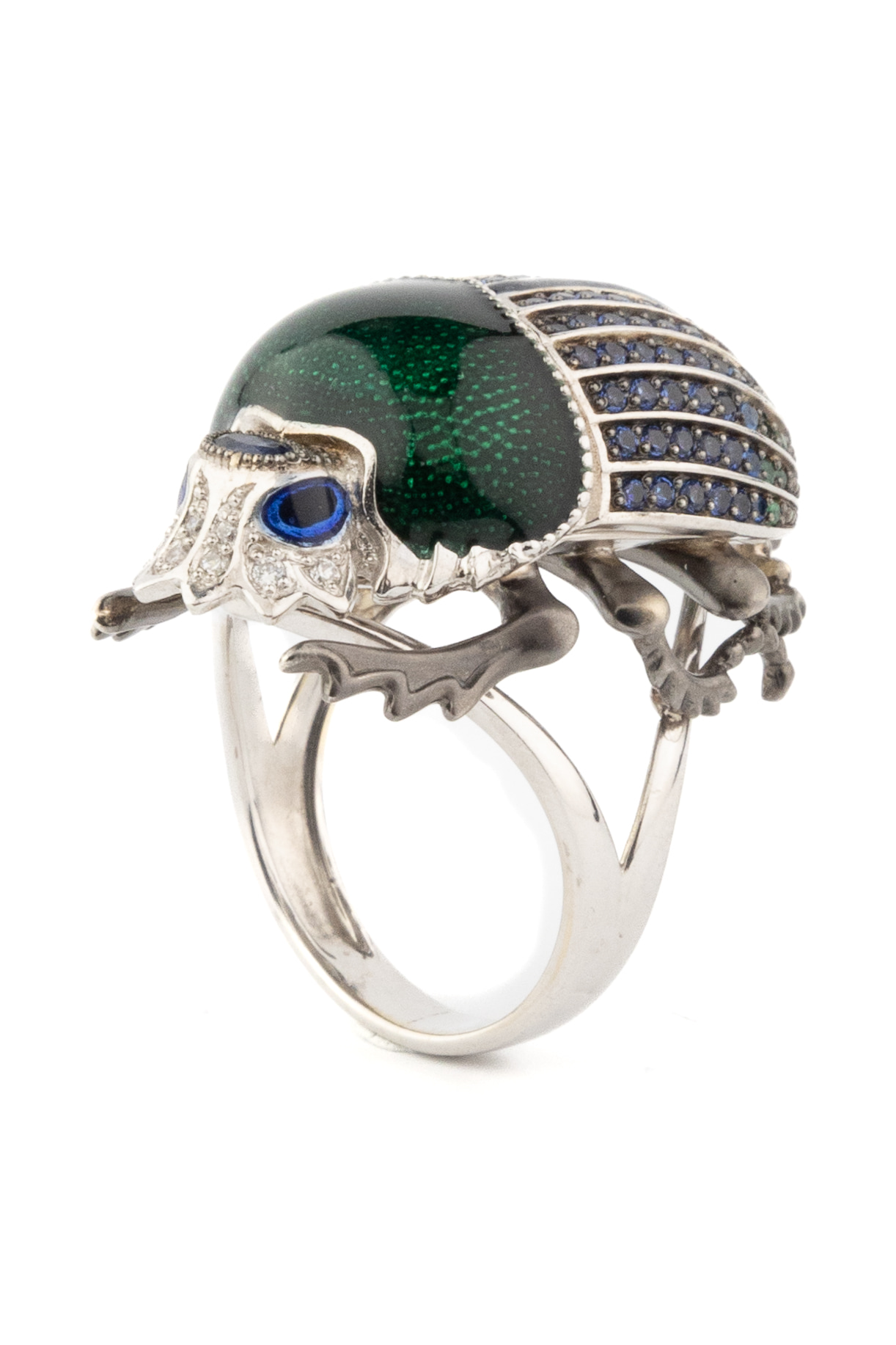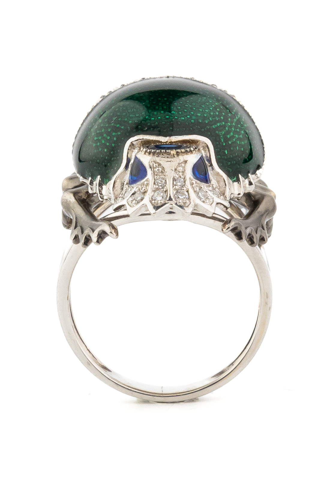 Кольцо из белого золота c эмаль, фианитом и сапфиром