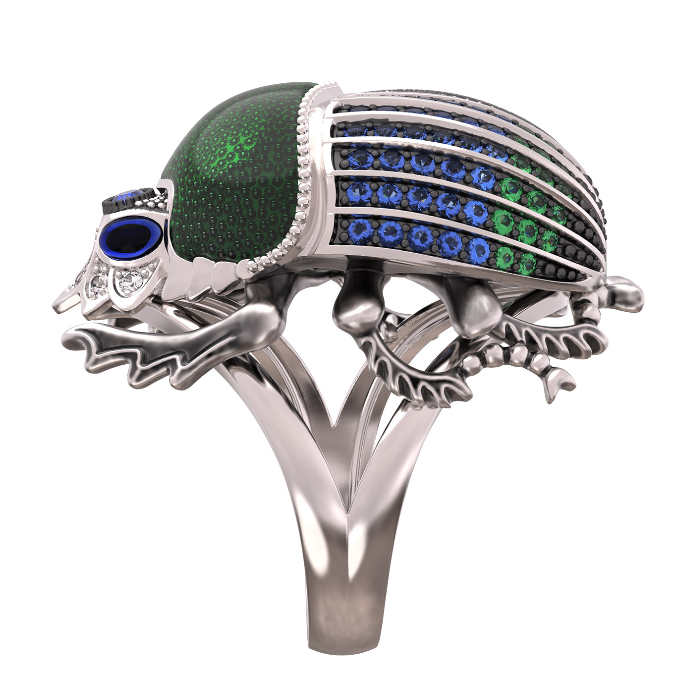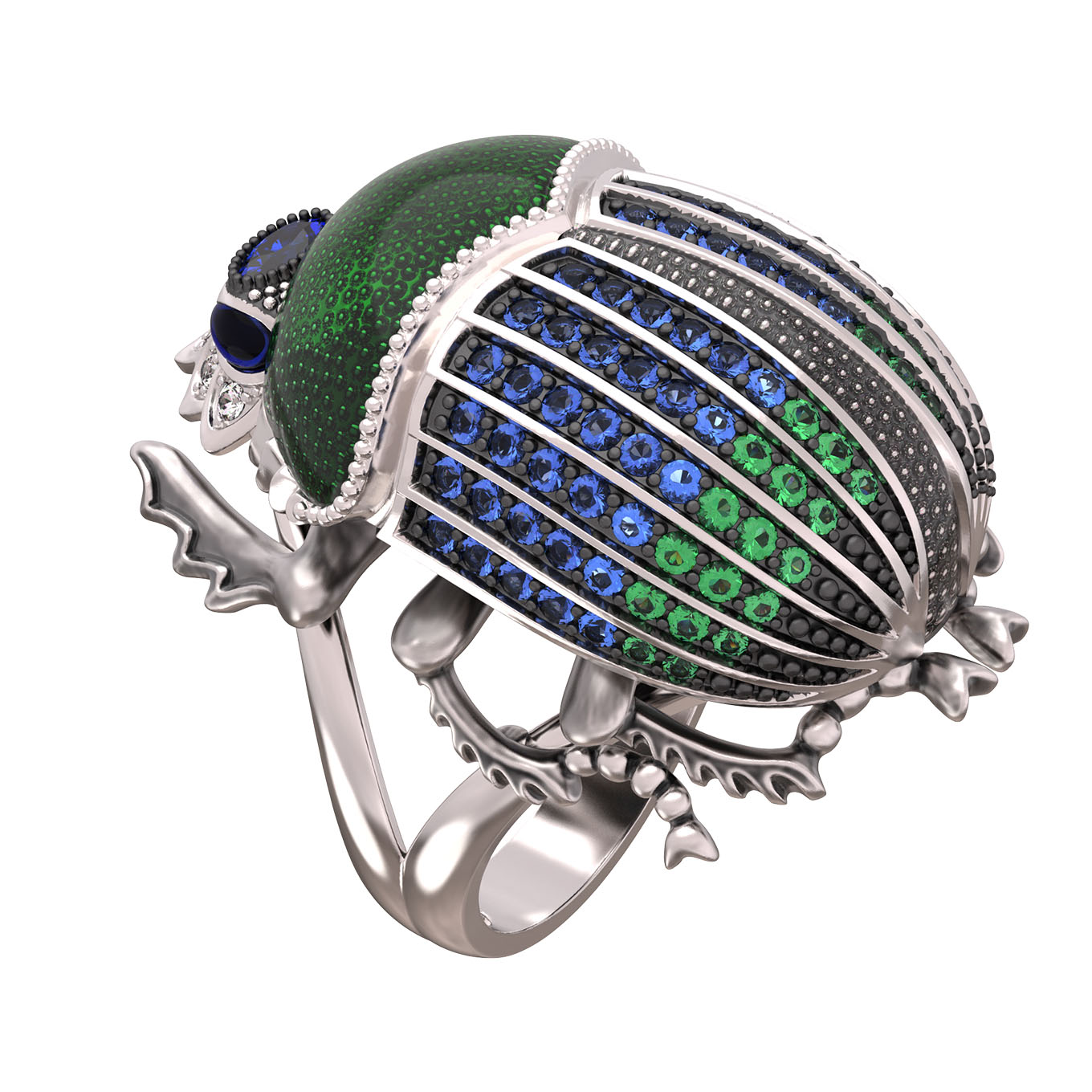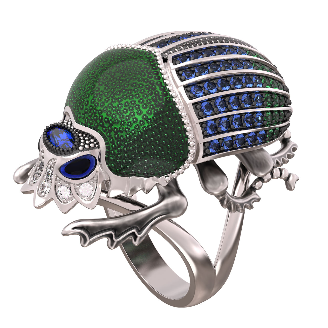 Кольцо из белого золота c эмаль, фианитом и сапфиром