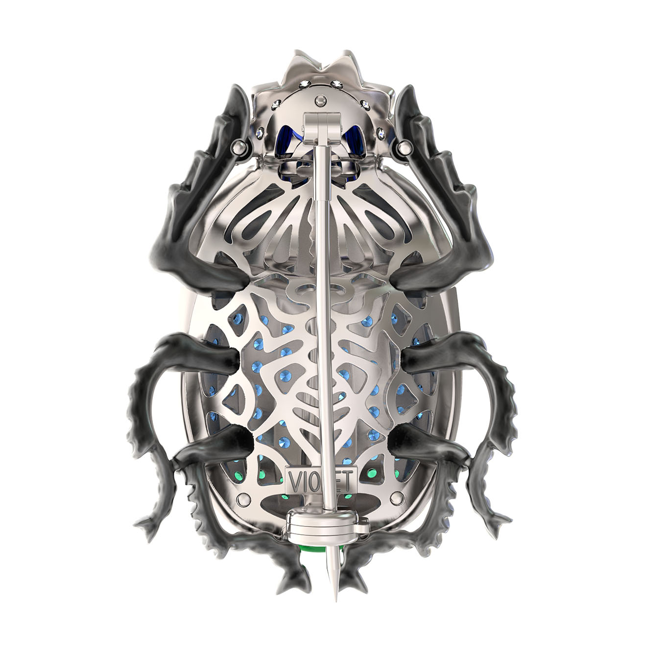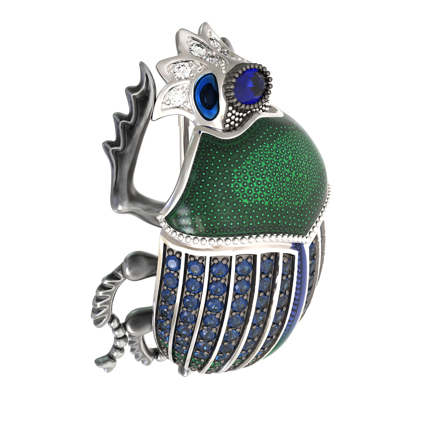 Брошь из белого золота c эмаль, фианитом и сапфиром