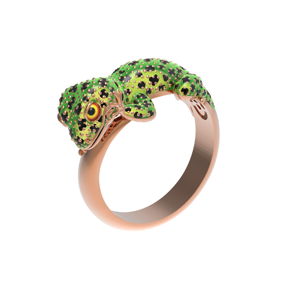 Кольцо из золота c эмаль и рубином