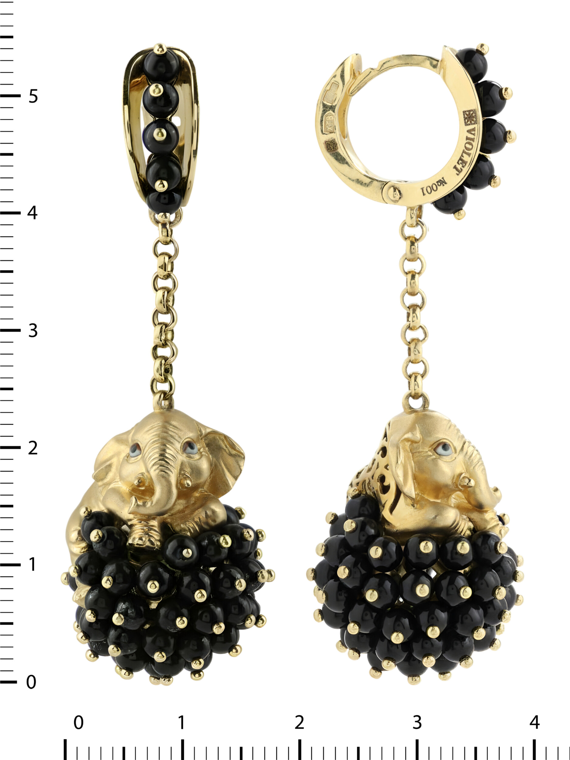 Серьги из лимонного золота c эмаль и ониксом