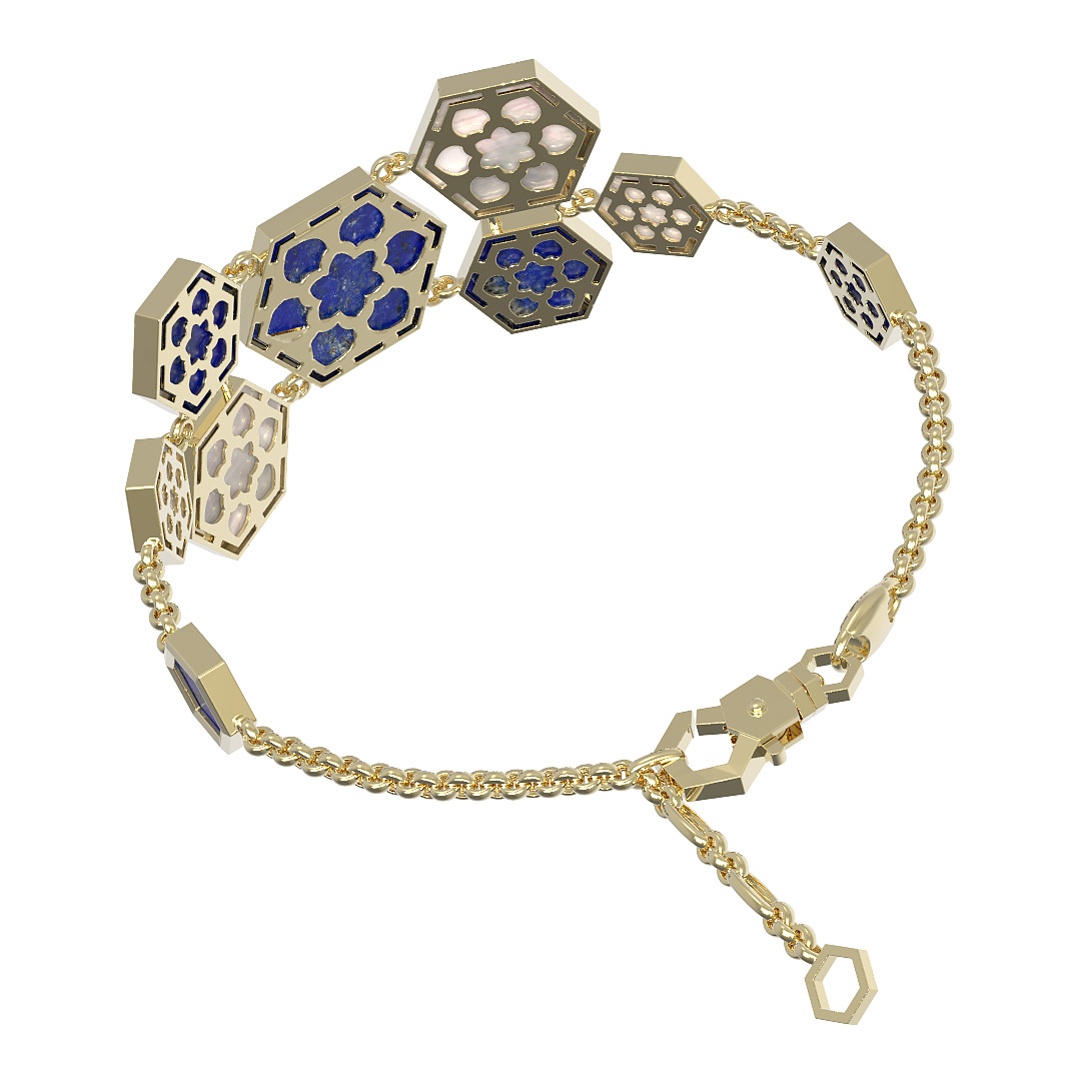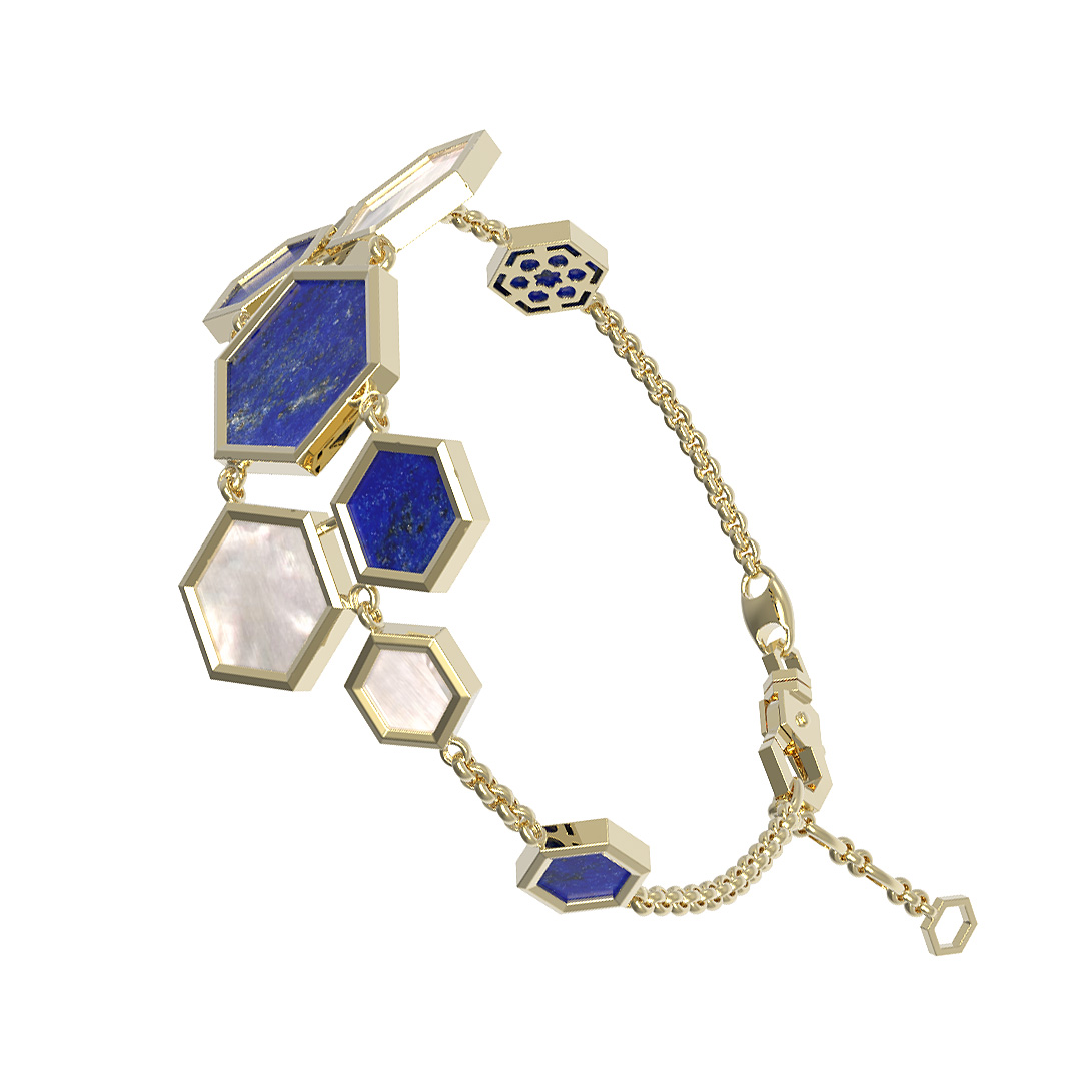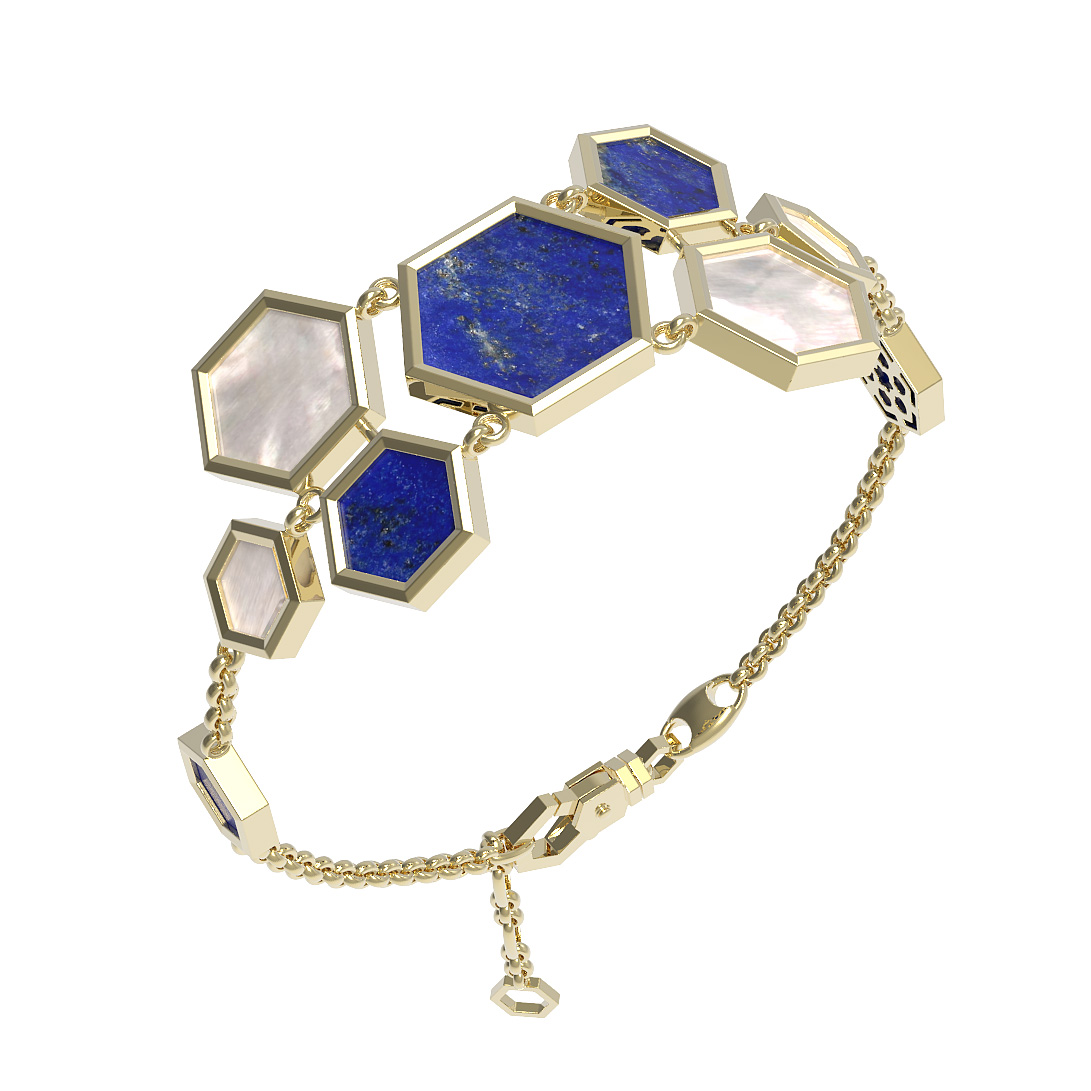 Браслет из лимонного золота c лазуритом и перламутром