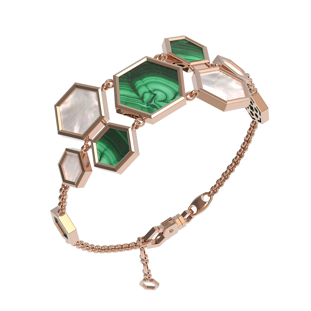 Браслет из золота c малахитом и перламутром