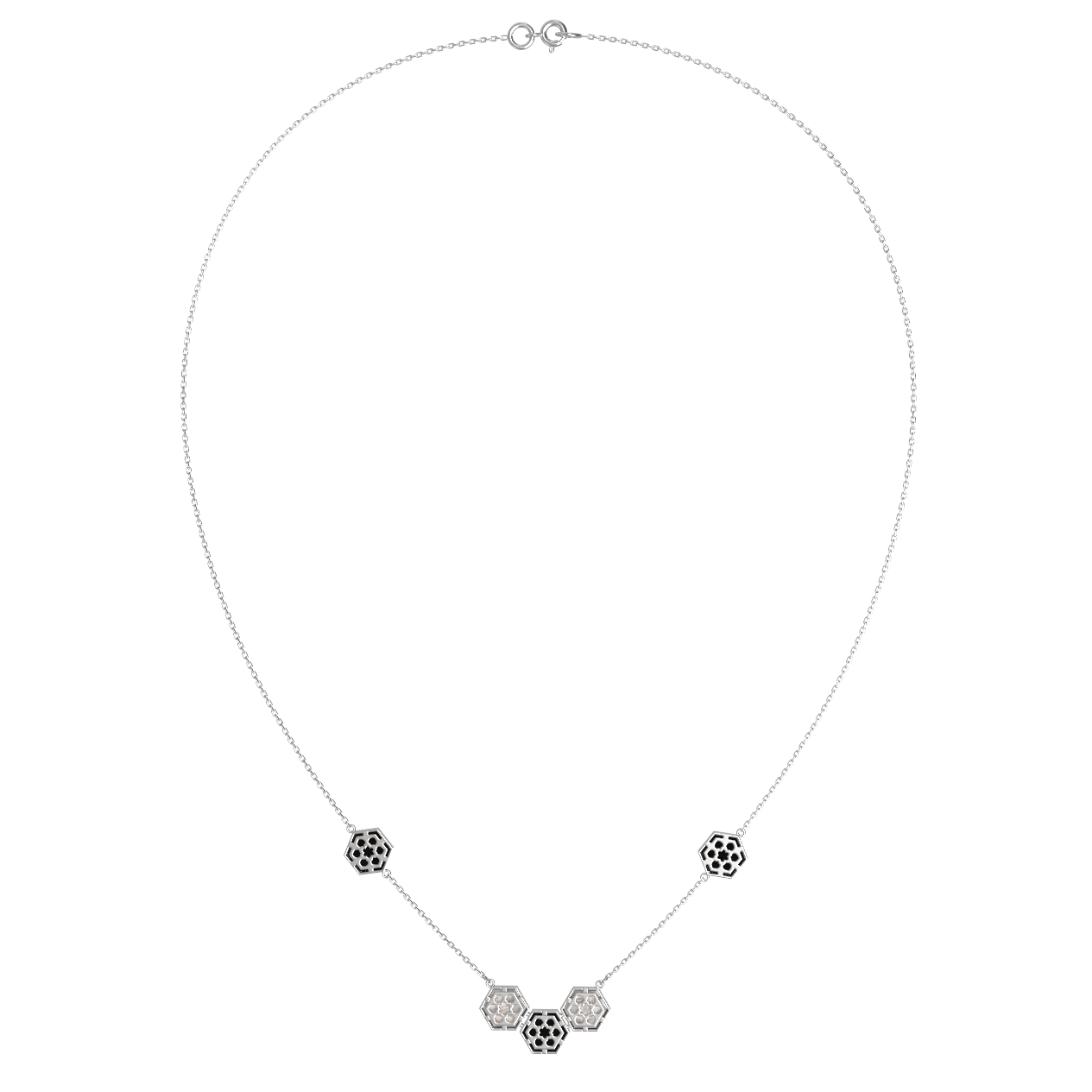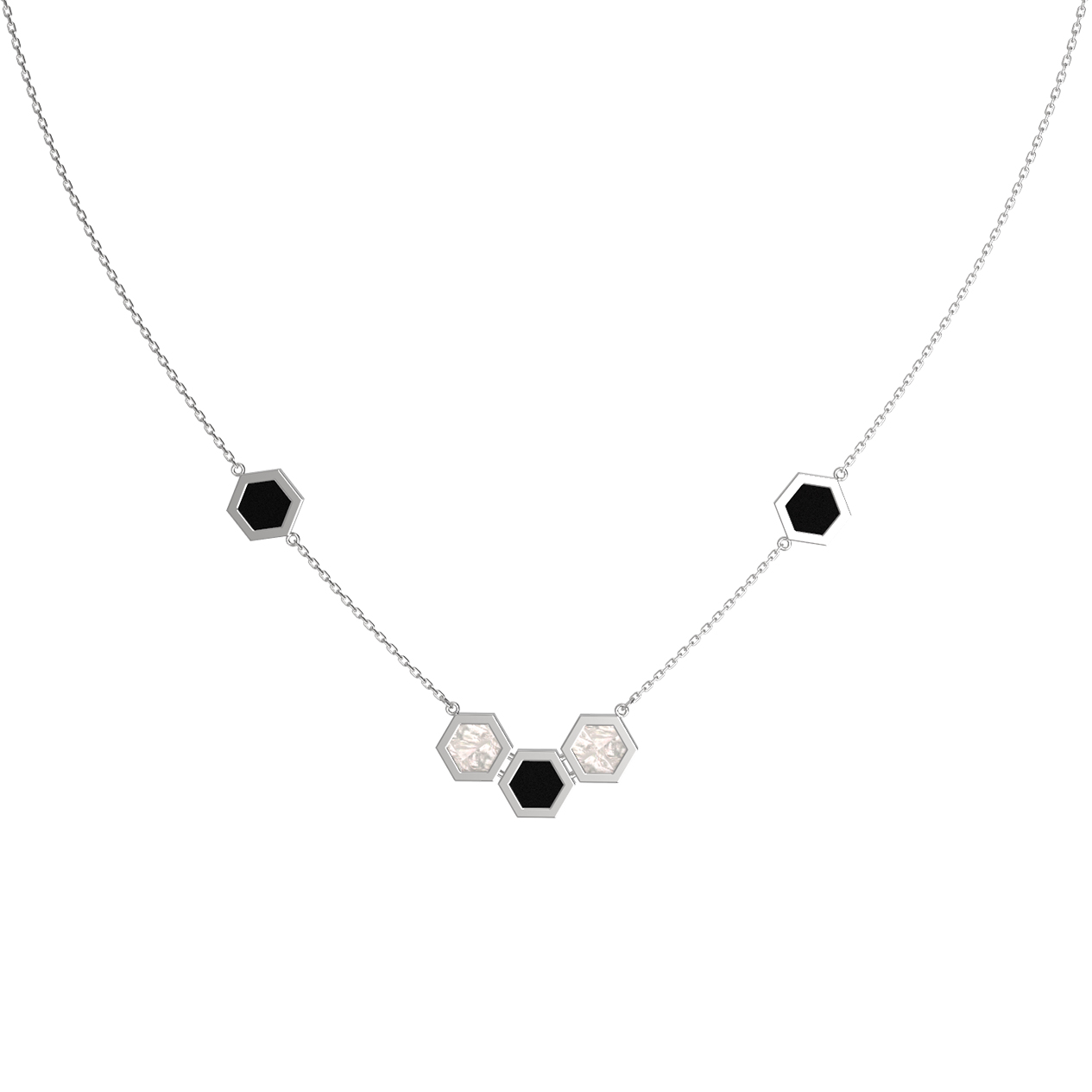 Колье из белого золота c ониксом и перламутром