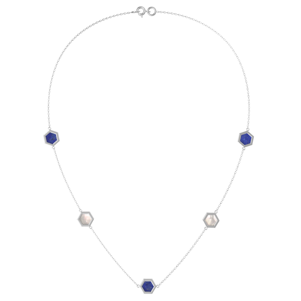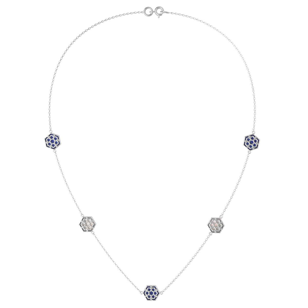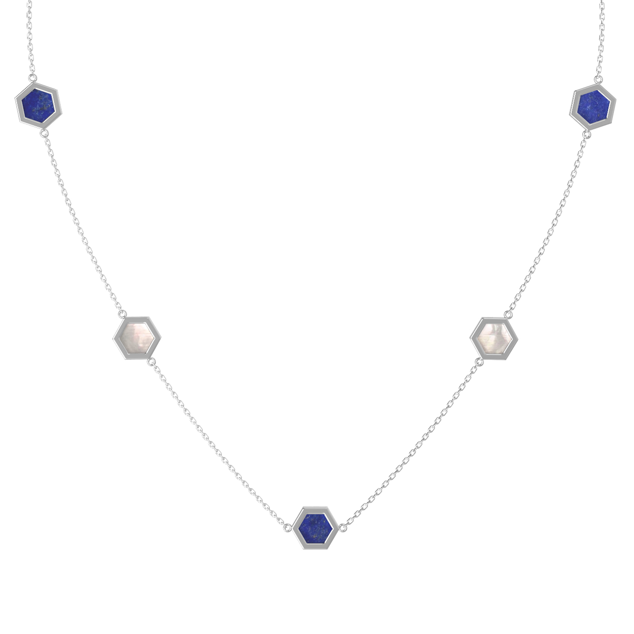 Колье из белого золота c лазуритом и перламутром