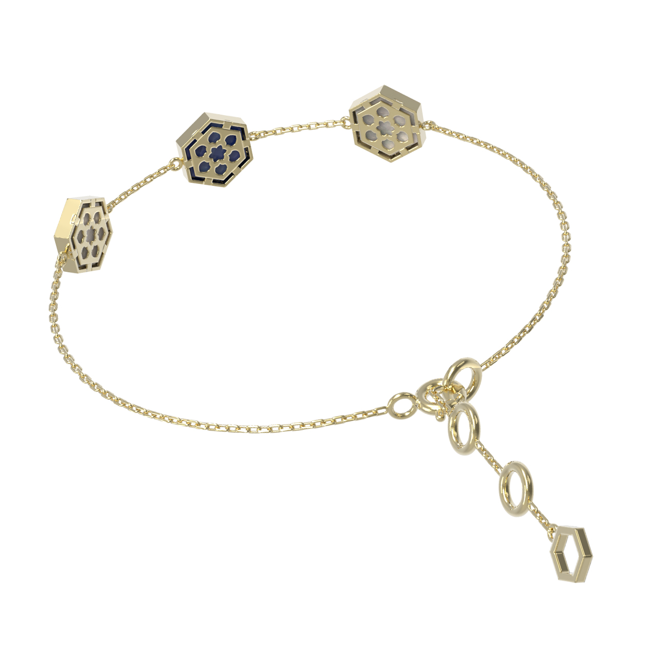 Браслет из лимонного золота c лазуритом и перламутром