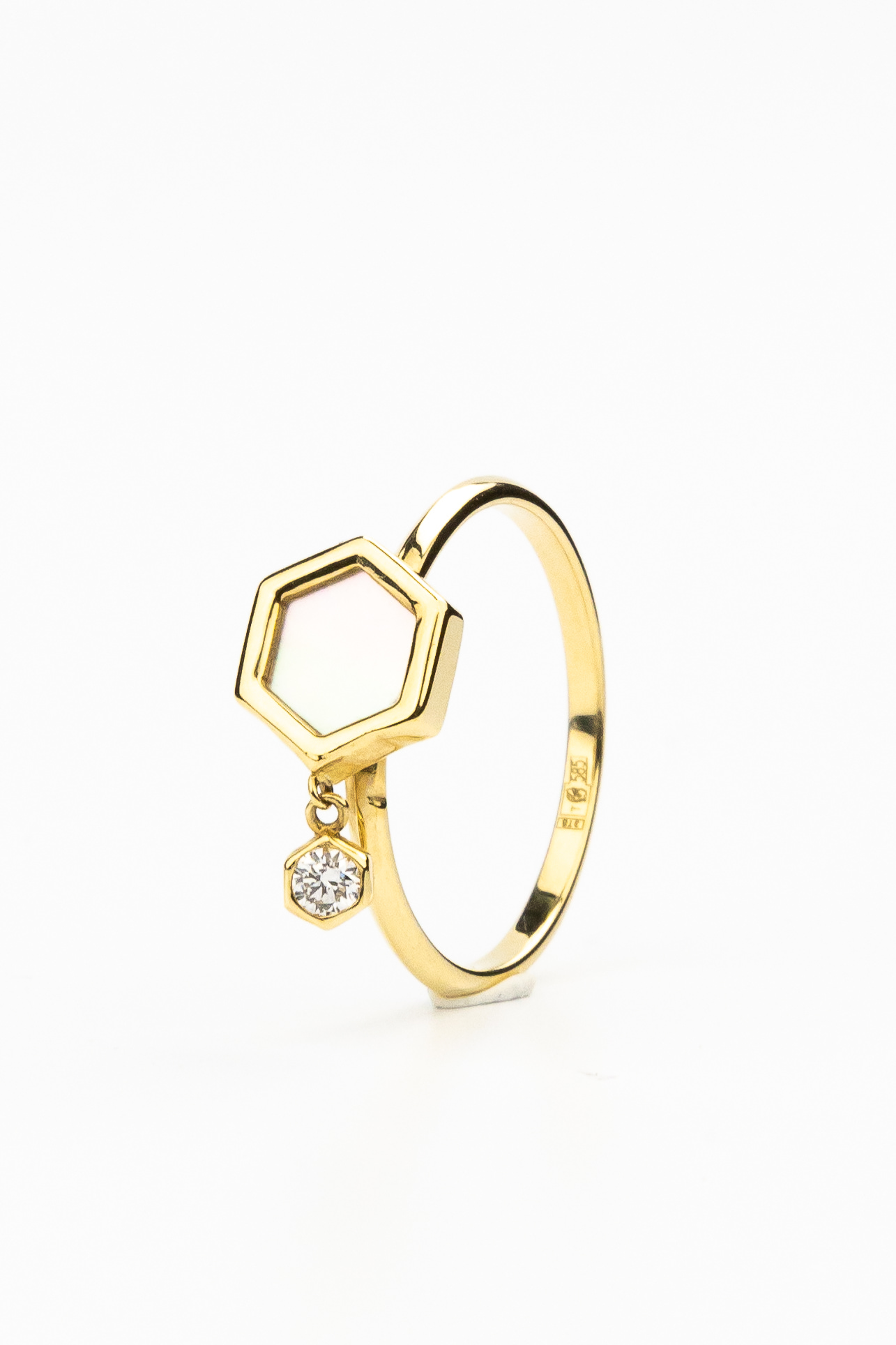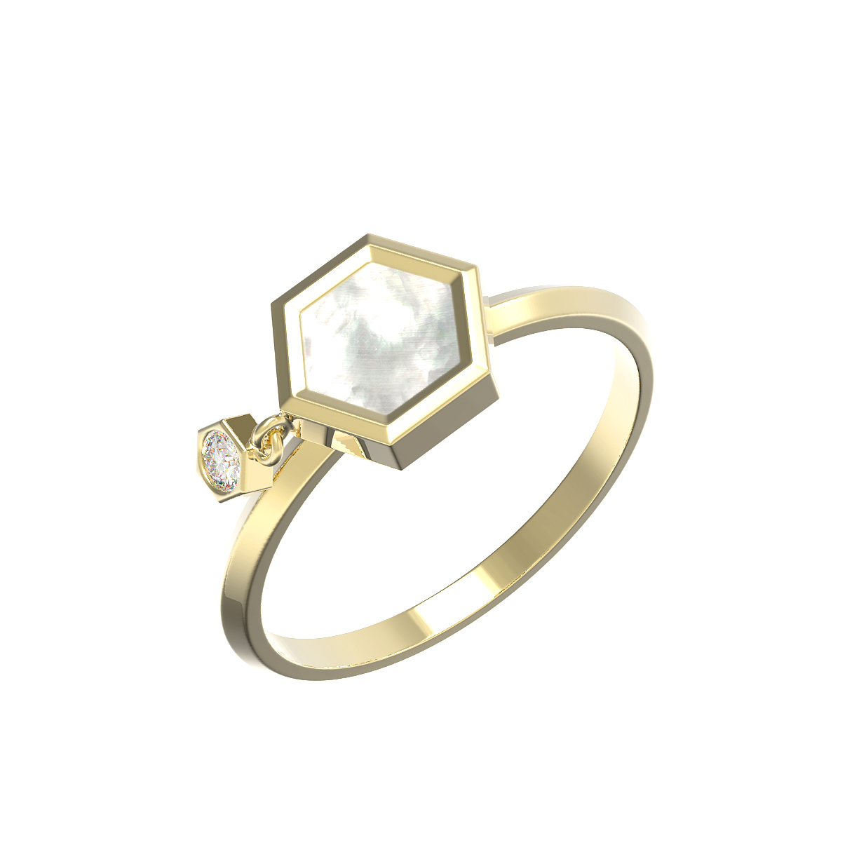 Кольцо из лимонного золота c бриллиантами и перламутром