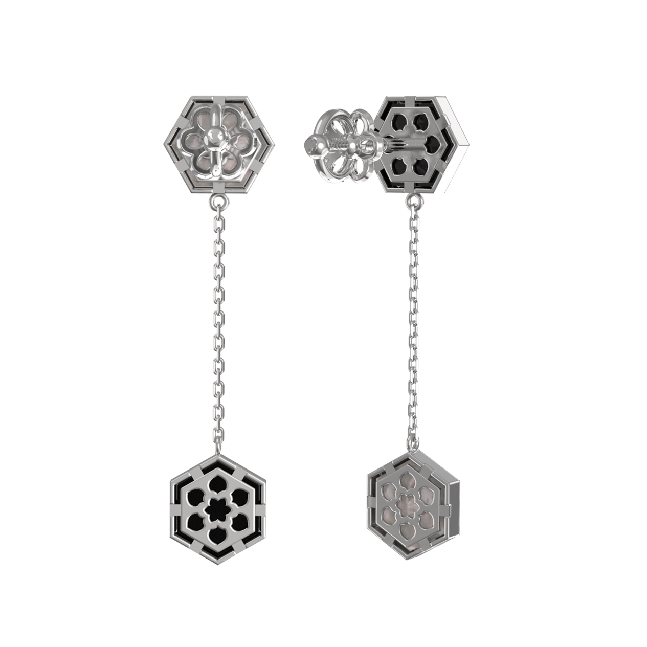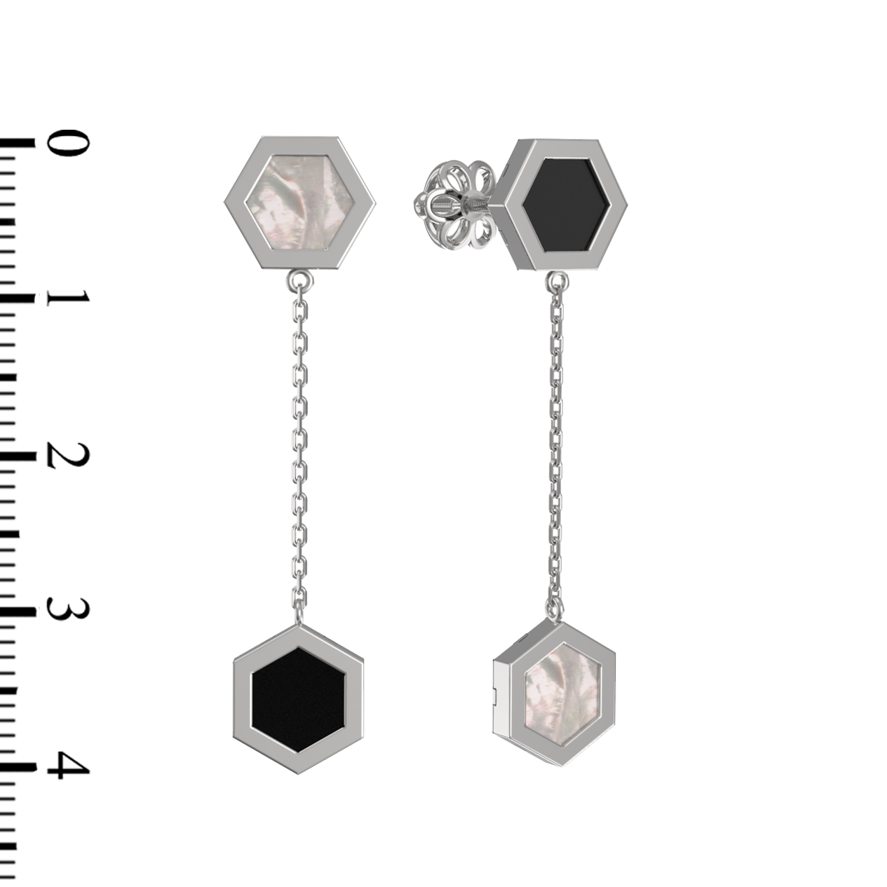 Серьги из белого золота c ониксом и перламутром