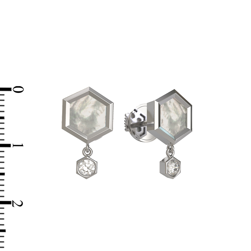 Серьги из белого золота c бриллиантами и перламутром