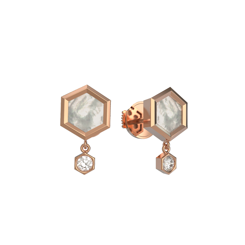 Серьги из золота c бриллиантами и перламутром