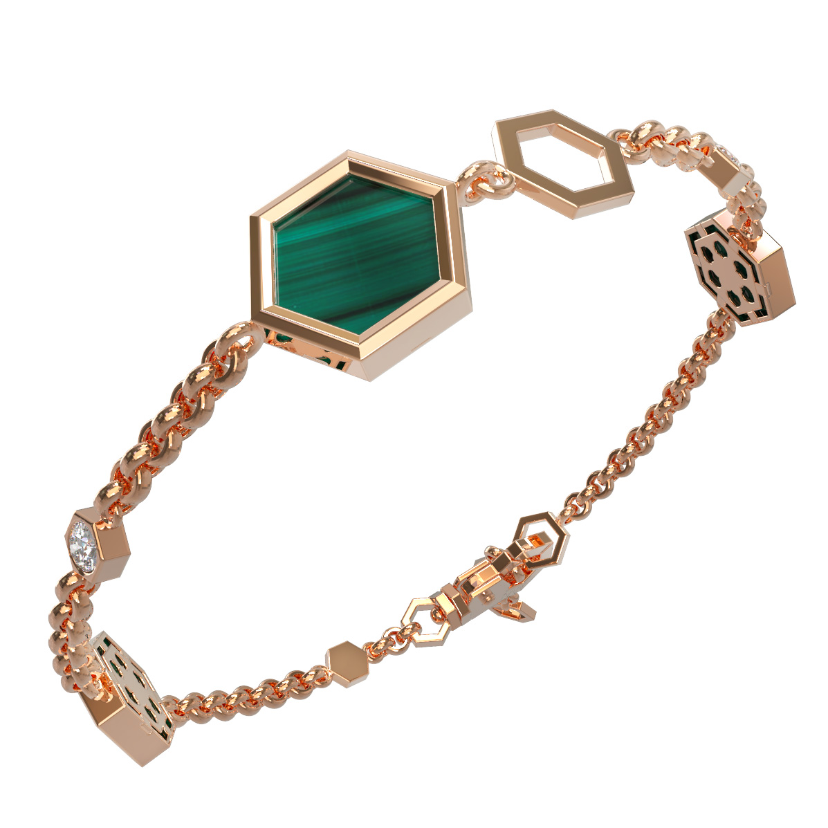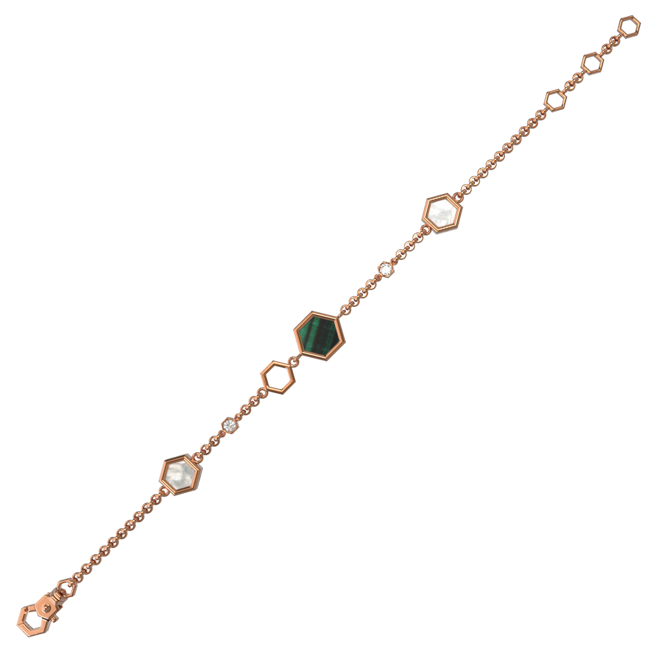 Браслет из золота c бриллиантами, малахитом и перламутром