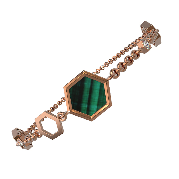 Браслет из золота c бриллиантами, малахитом и перламутром