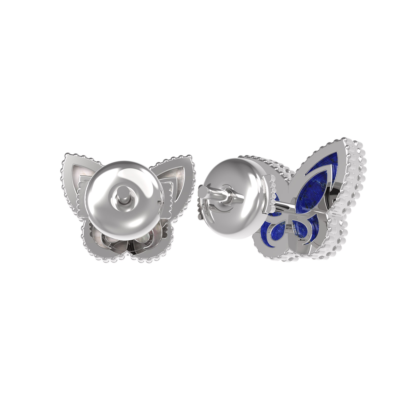 Серьги из белого золота c лазуритом и перламутром