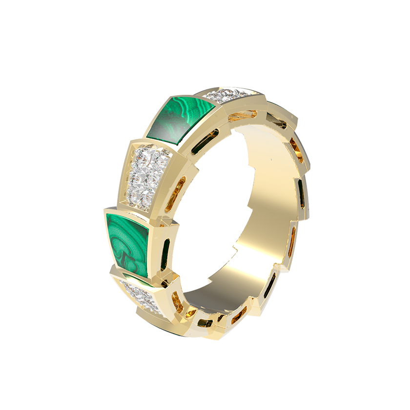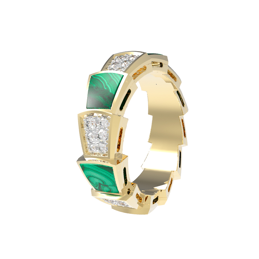 Кольцо из лимонного золота c бриллиантами и малахитом