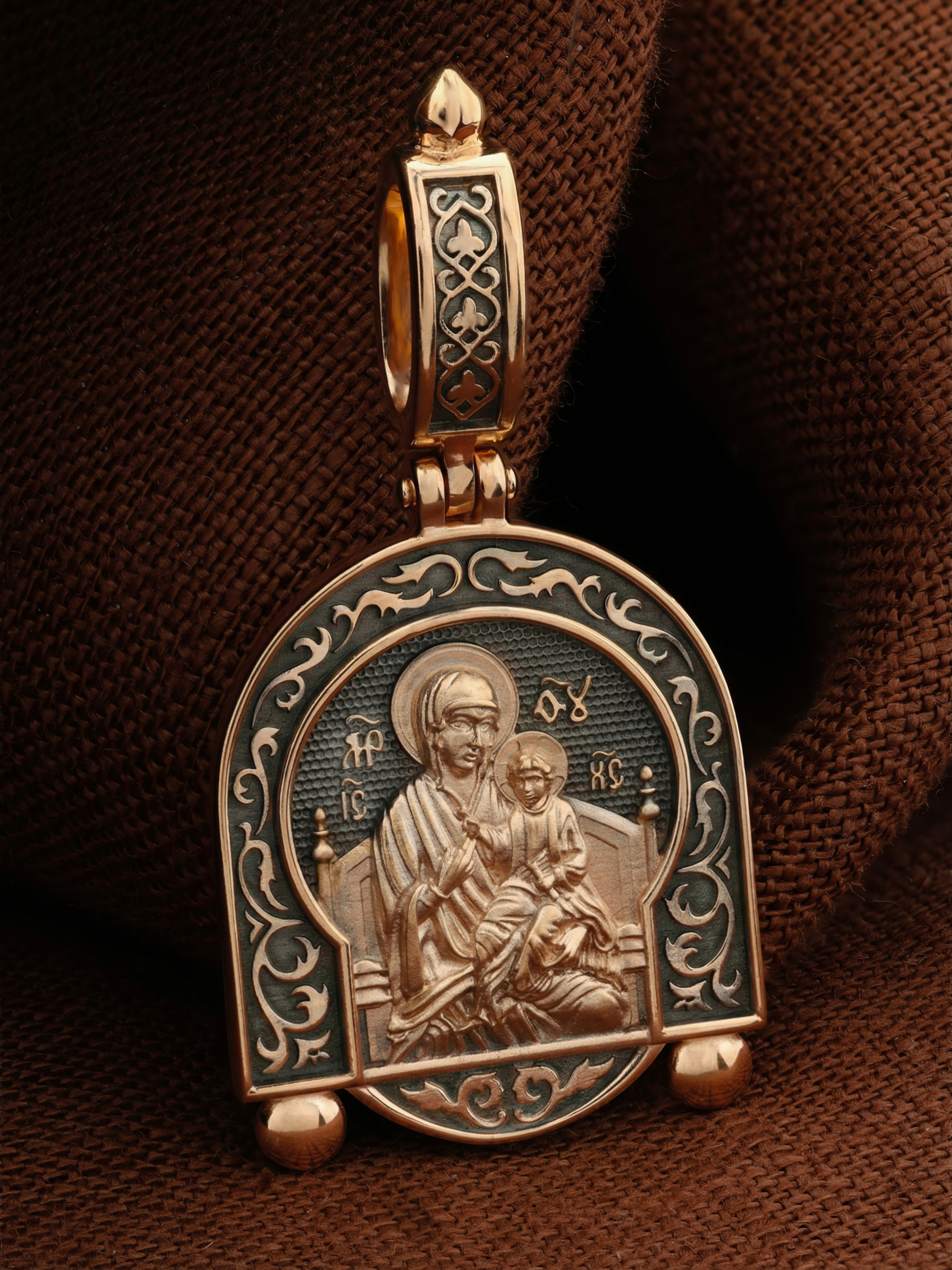 На обороте образка написана молитва Богородице в честь Ее иконы «Всецарица» (Пантанасса): «От всякия напасти огради стадо Твое, к заступлению Твоему взывающее присно».