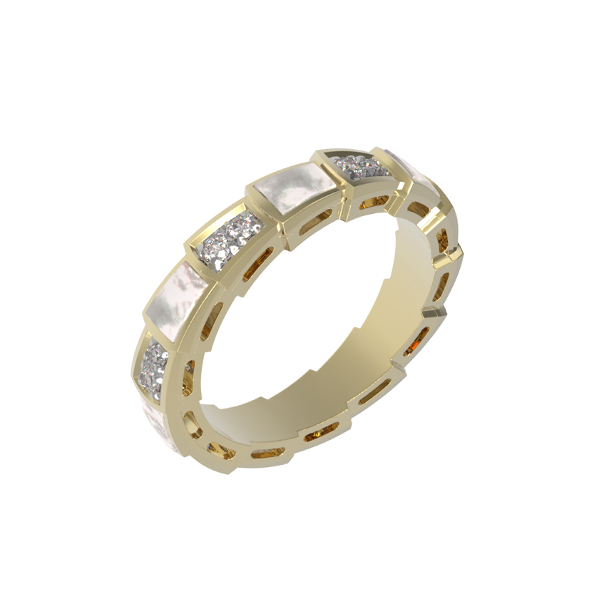 Кольцо из лимонного золота c бриллиантами и перламутром