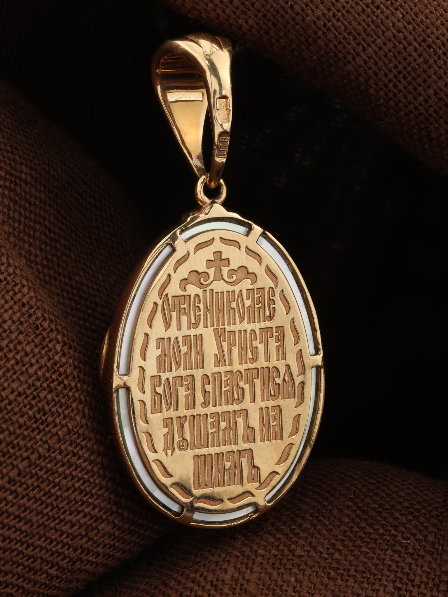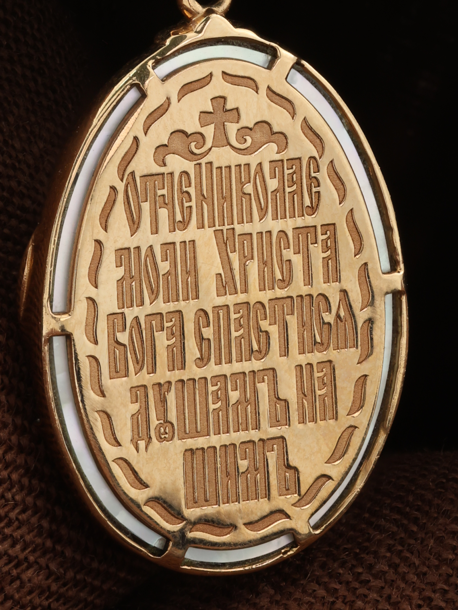 На оборотной стороне образка написаны слова молитвы: «Отче Николае, моли Христа Бога спастися душам нашим».