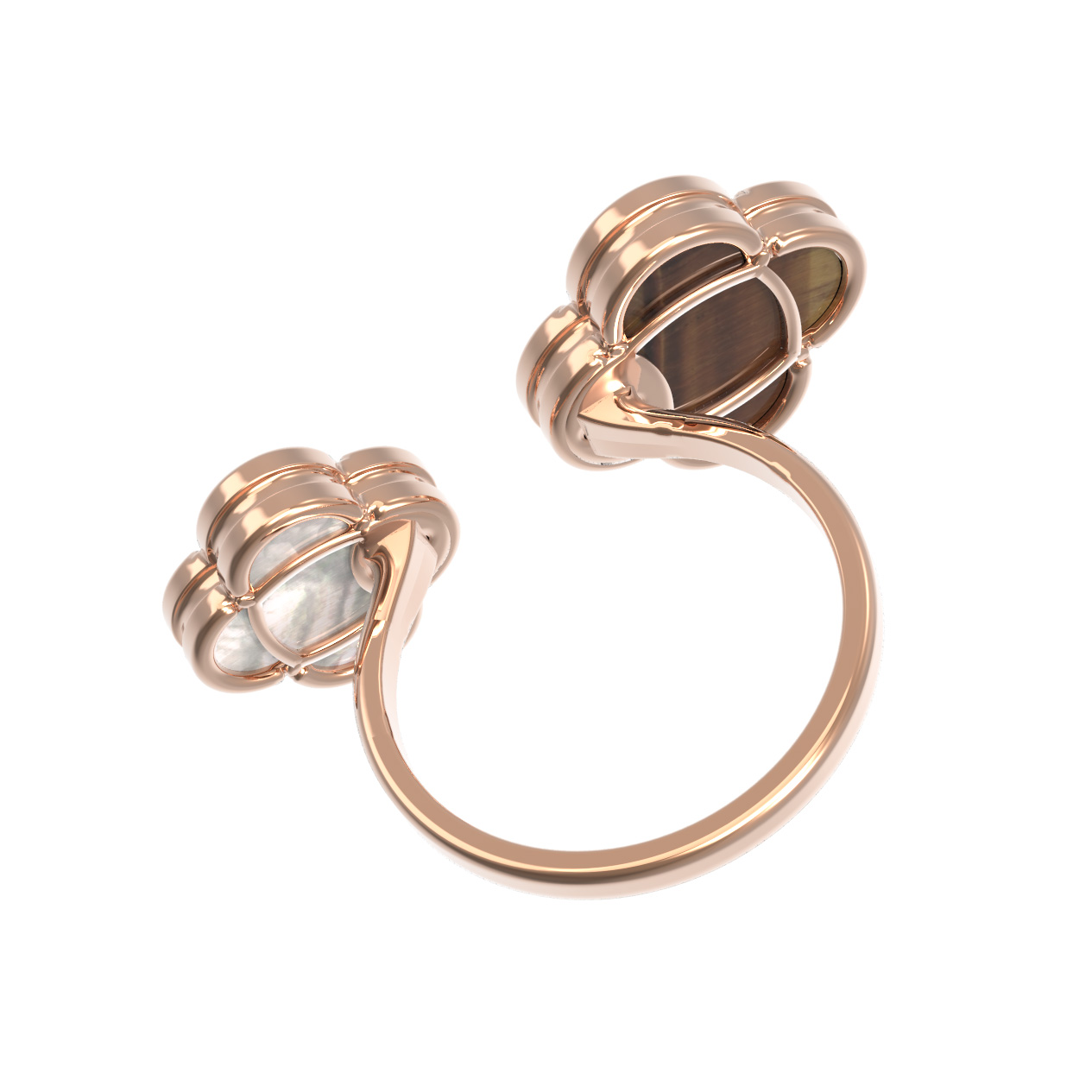Кольцо из золота c тигровым глазом и перламутром