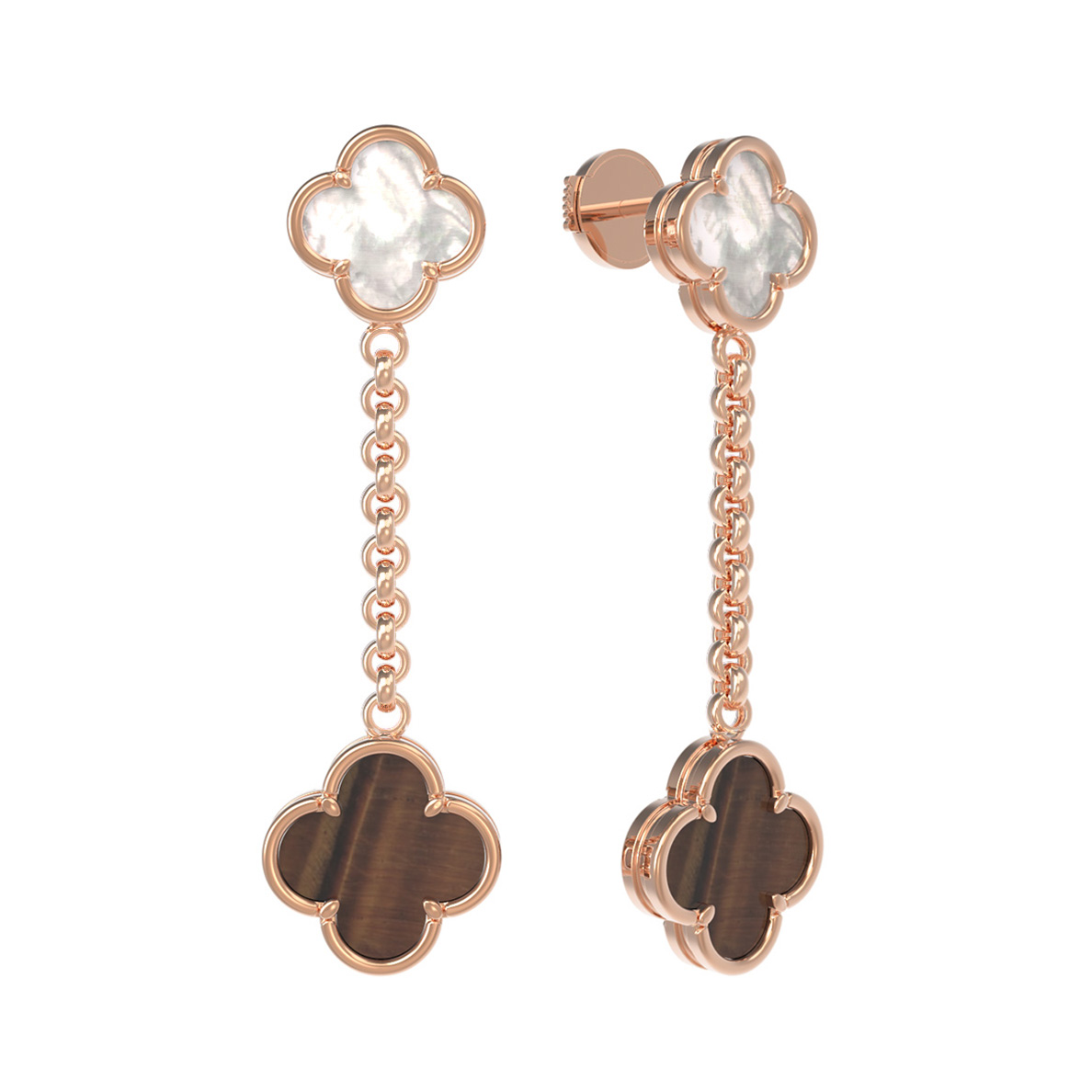 Серьги из золота c тигровым глазом и перламутром