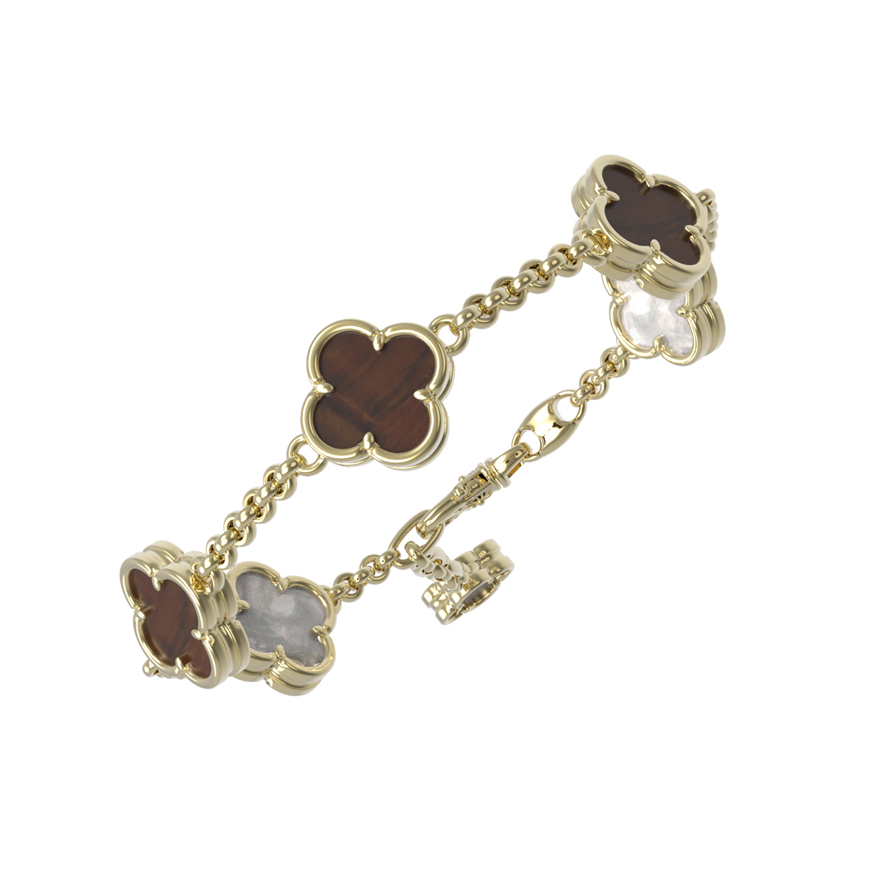 Браслет из лимонного золота c тигровым глазом и перламутром