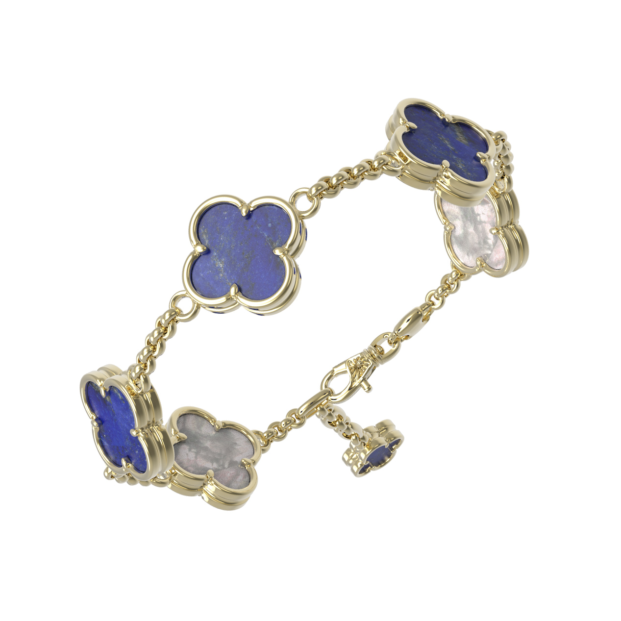 Браслет из лимонного золота c лазуритом и перламутром